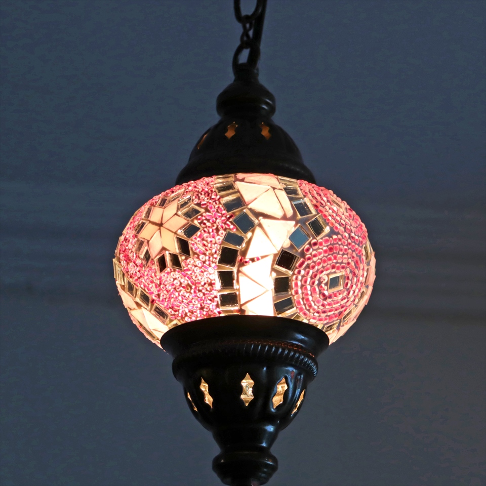 - トルコランプ モザイクランプ 直径13cm 全高67cm ピンク ペンダントライト
