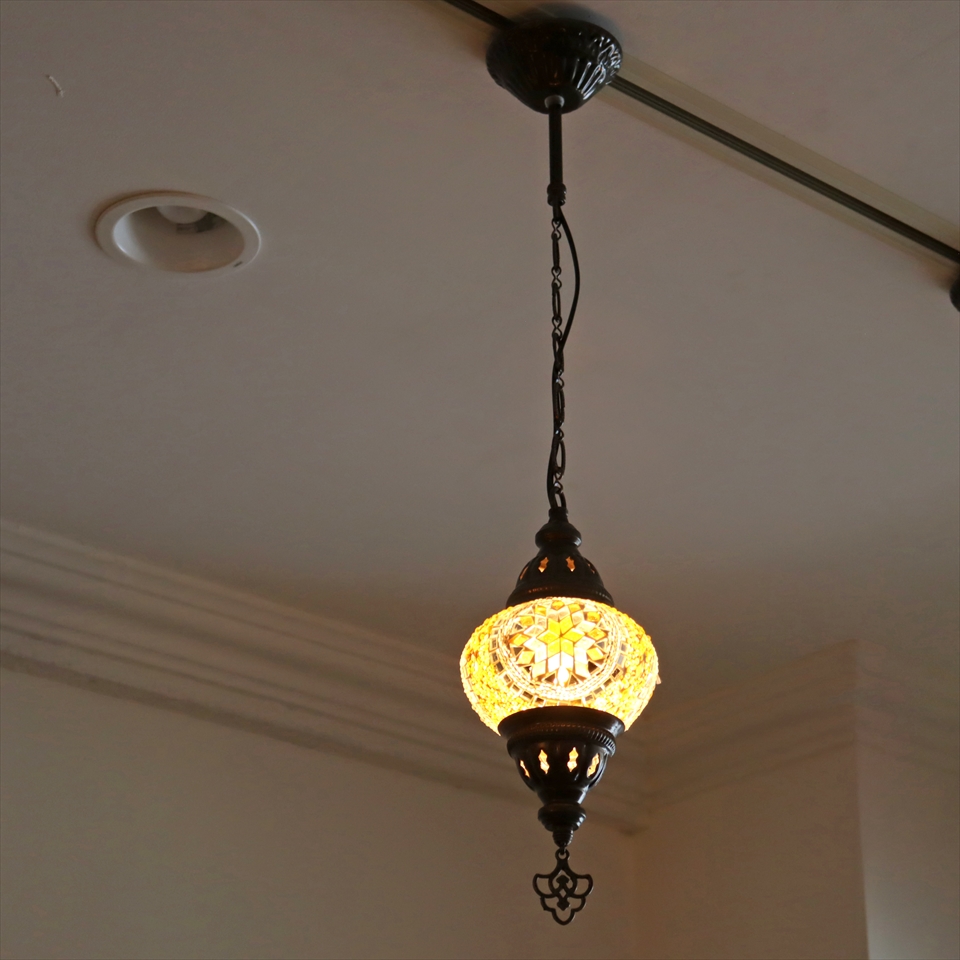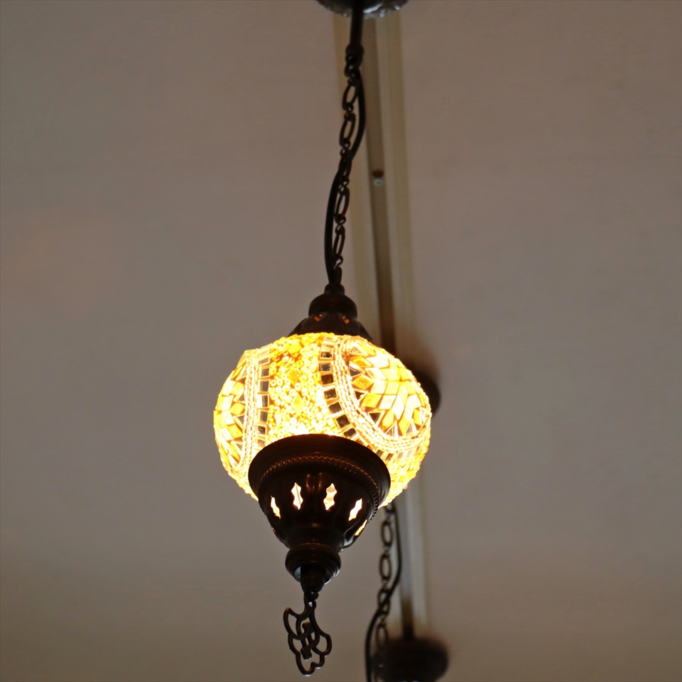 トルコランプ モザイクランプ 直径13cm 全高67cm イエロー ペンダントライト