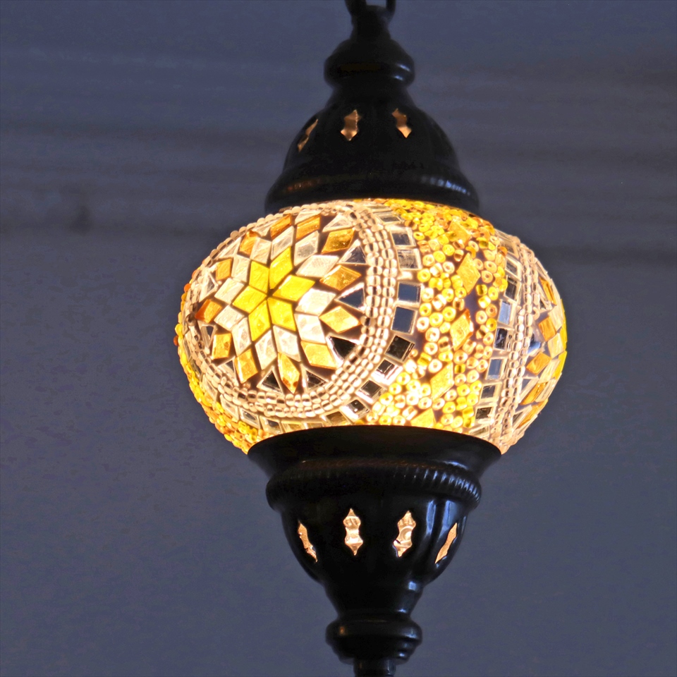 - トルコランプ モザイクランプ 直径13cm 全高67cm イエロー ペンダントライト