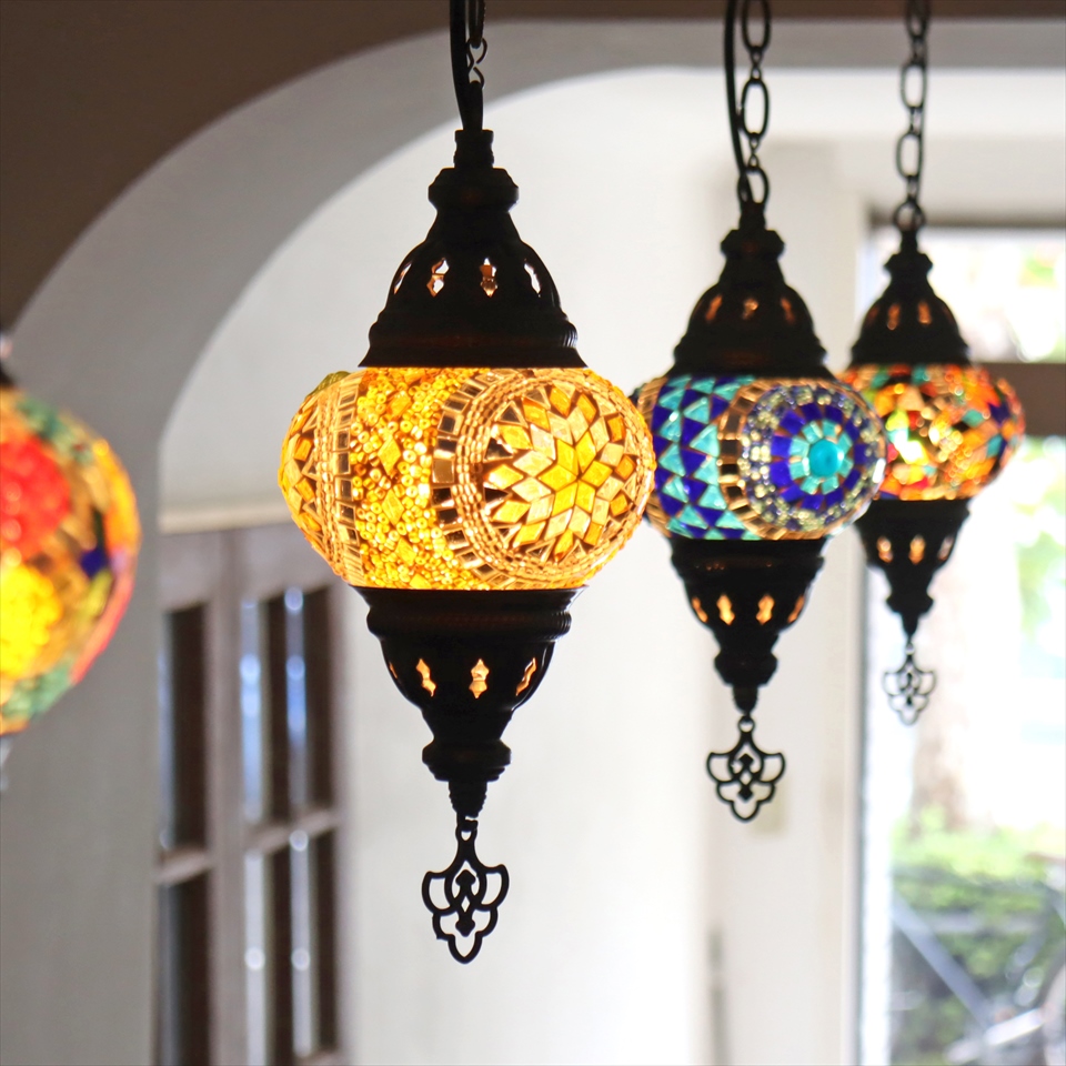 Key:トルコランプ モザイクランプ 天井照明 ガラスシェード ペンダントライト シーリングライト ランプ ライト 照明 間接照明 インテリア エスニック オリエンタル ガラスランプ 引掛けシーリング対応