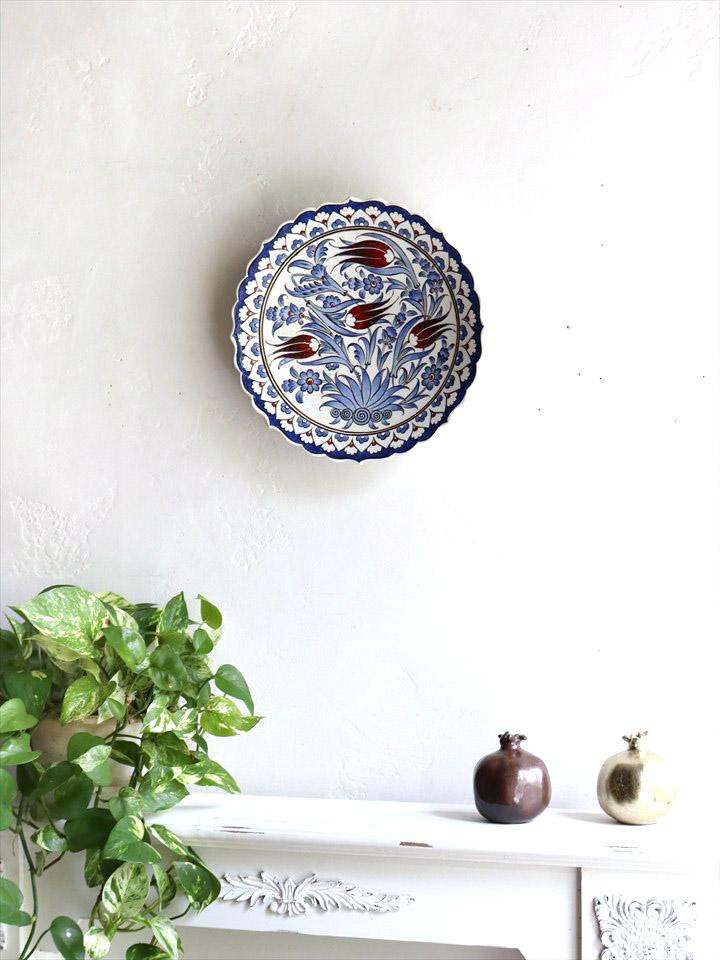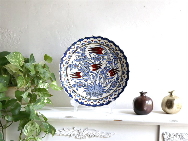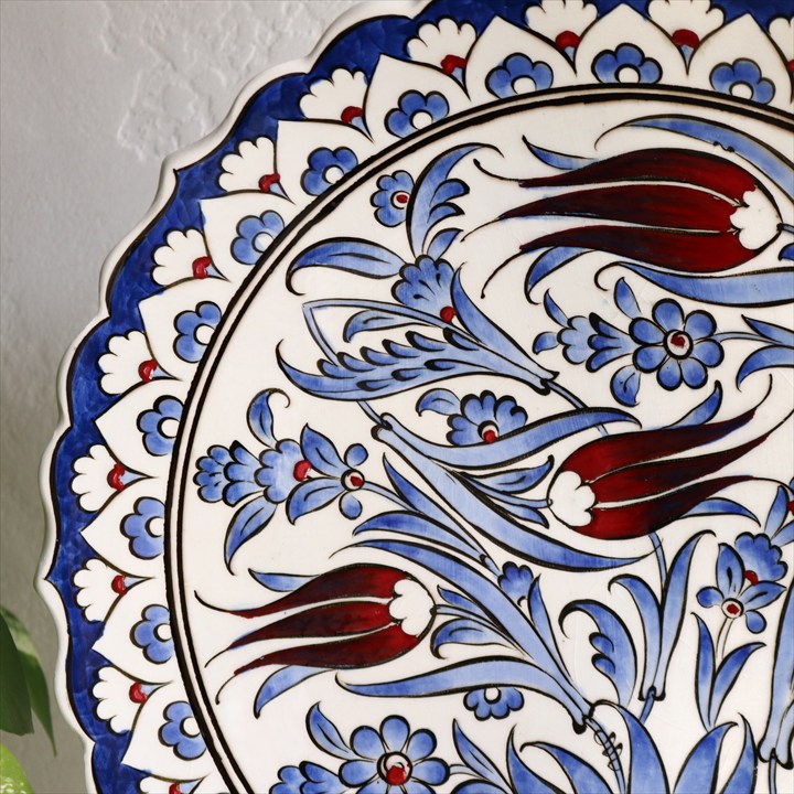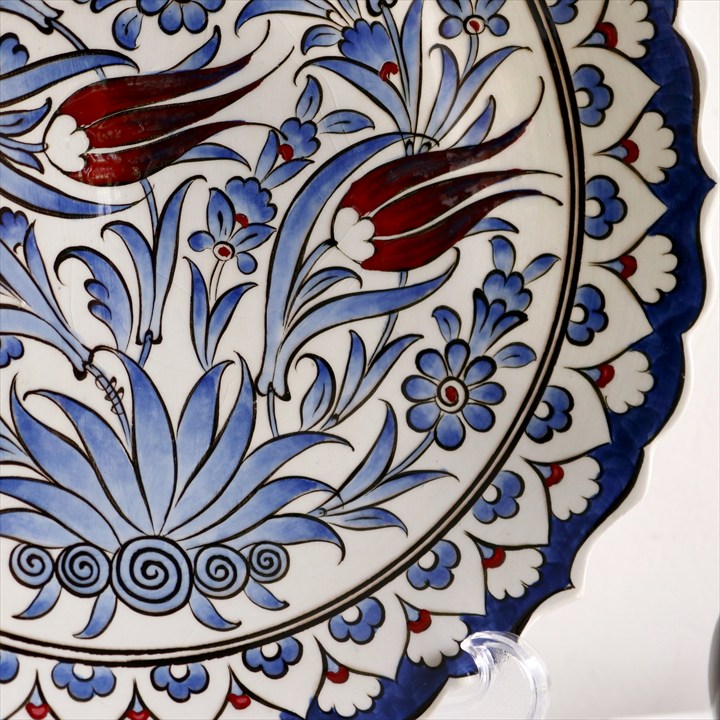 5. トルコ・キュタフヤ陶器 飾り絵皿 直径31cm チューリップ オットマンクラシック・ミュージアムピース Turkish Hand Paint Plate