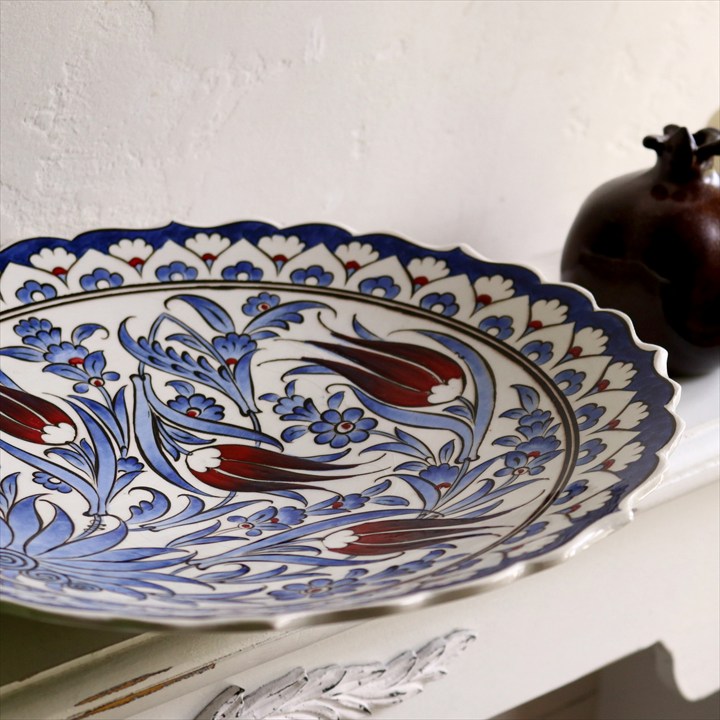 トルコ・キュタフヤ陶器 飾り絵皿 直径31cm チューリップ オットマンクラシック・ミュージアムピース Turkish Hand Paint Plate