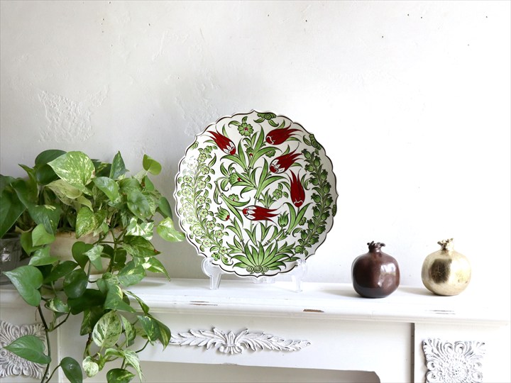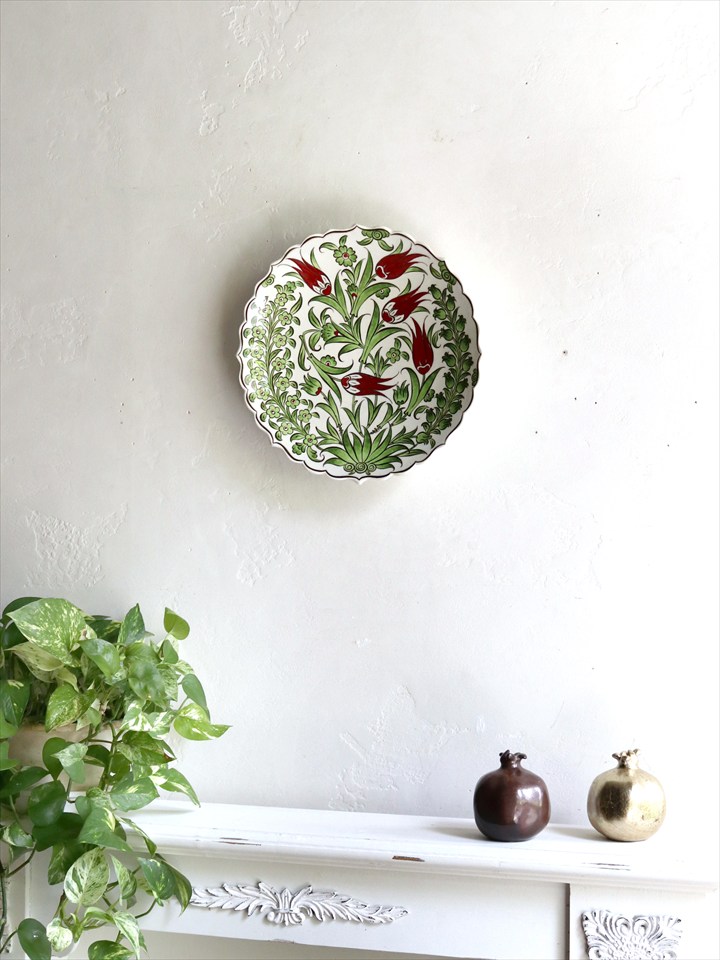 トルコ・キュタフヤ陶器 飾り絵皿 直径31cm チューリップ&すずらん オットマンクラシック・ミュージアムピース Turkish Hand Paint Plate