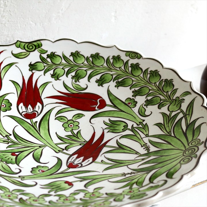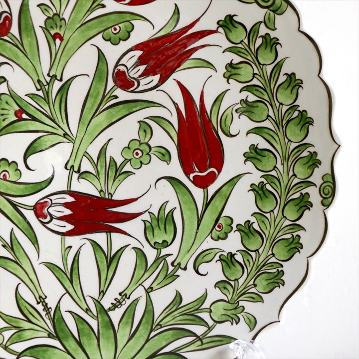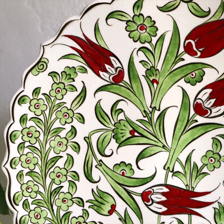 - トルコ・キュタフヤ陶器 飾り絵皿 直径31cm チューリップ&すずらん オットマンクラシック・ミュージアムピース Turkish Hand Paint Plate