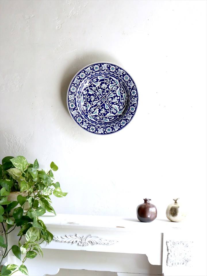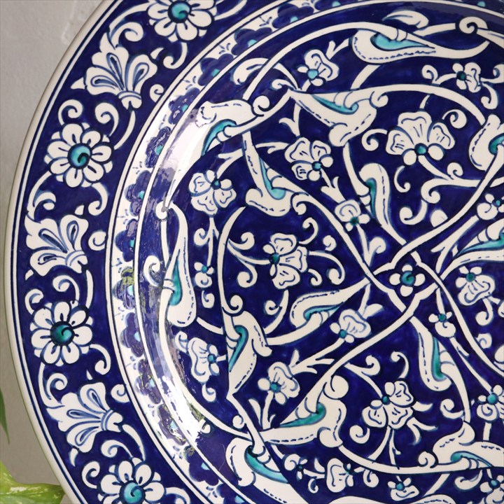 - トルコ・キュタフヤ陶器 飾り絵皿 直径32.5cm 細かなアラベスク文様 オットマンクラシック・ミュージアムピース Turkish Hand Paint Plate