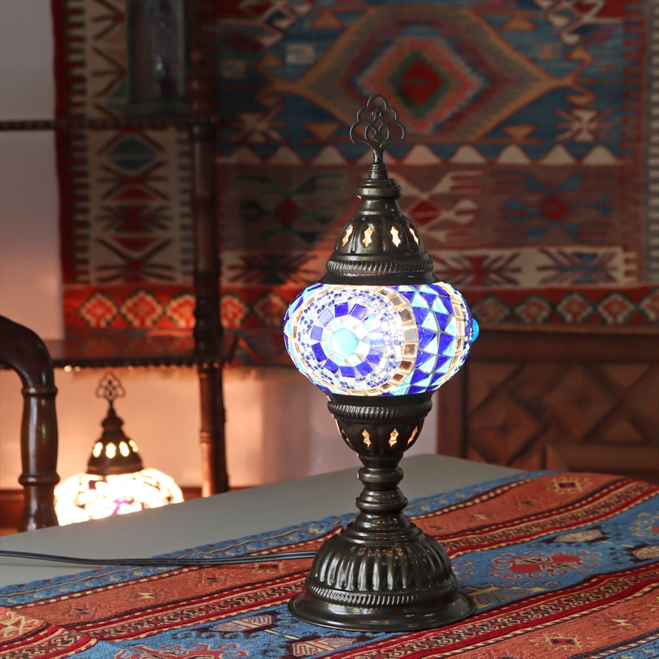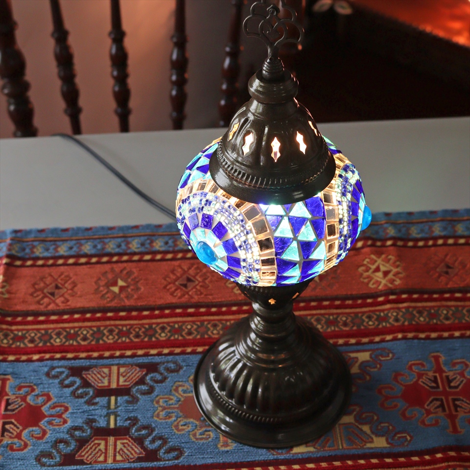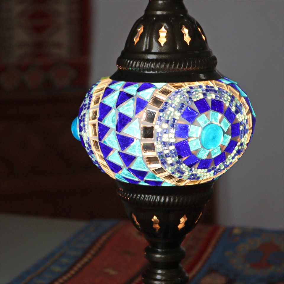 - トルコランプ モザイクテーブルランプ 直径13cm 全高36cm ブルー