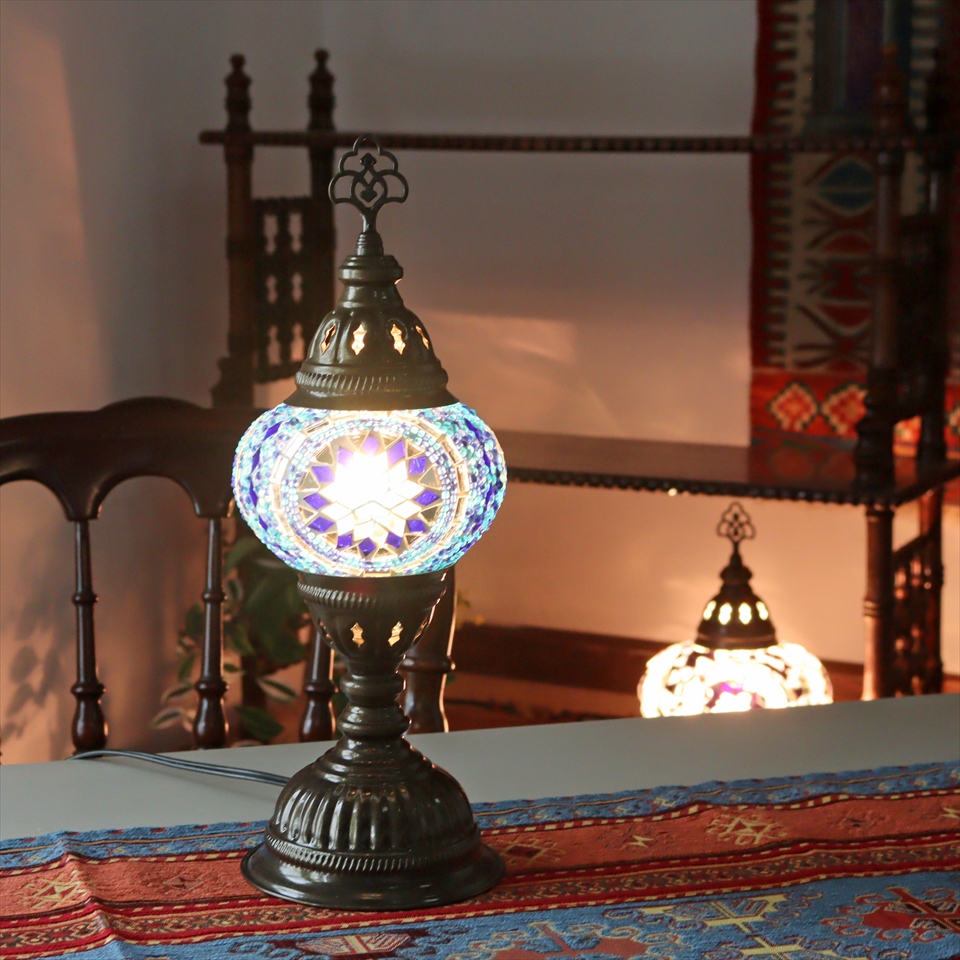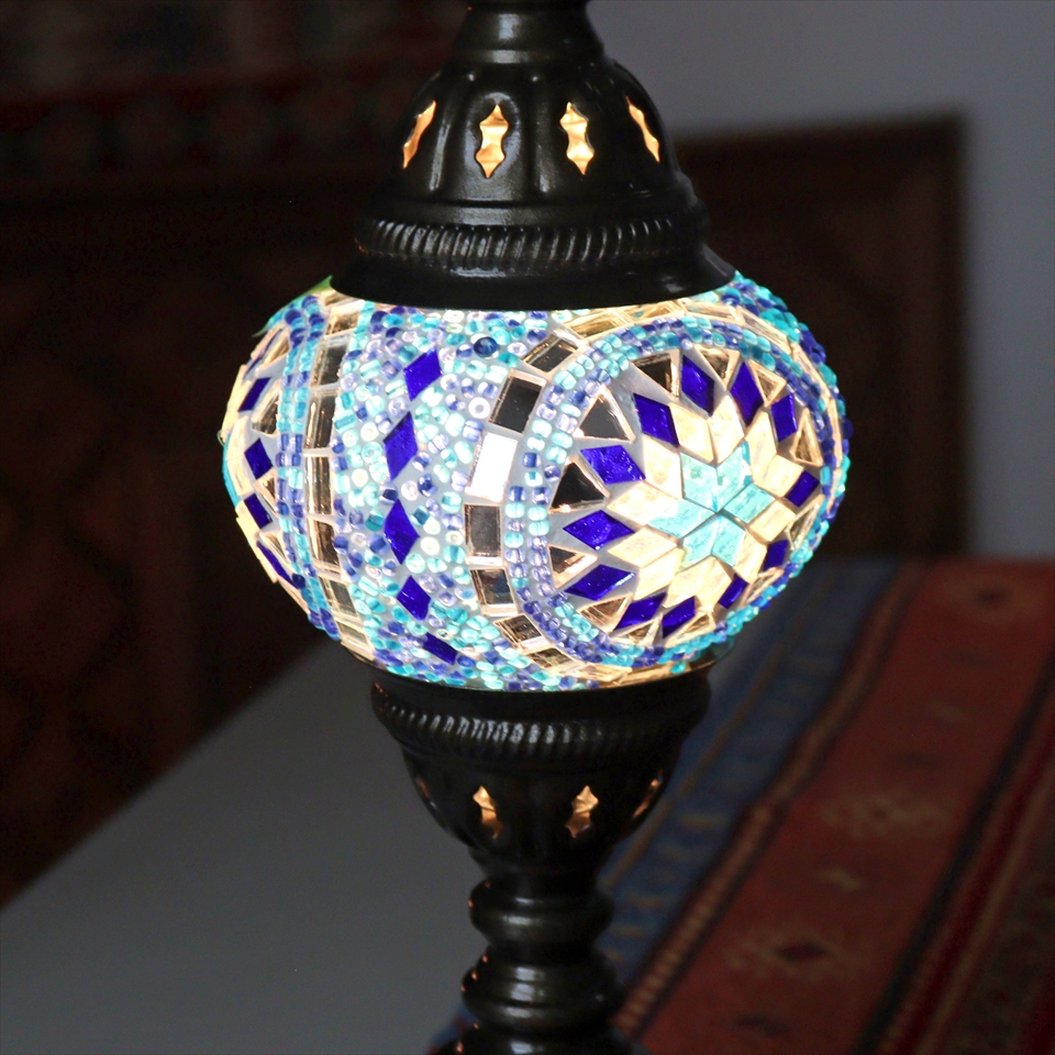 トルコランプ モザイクテーブルランプ 直径13cm 全高36cm ブルー