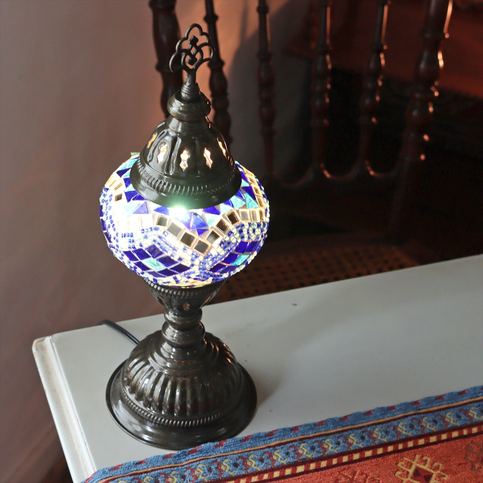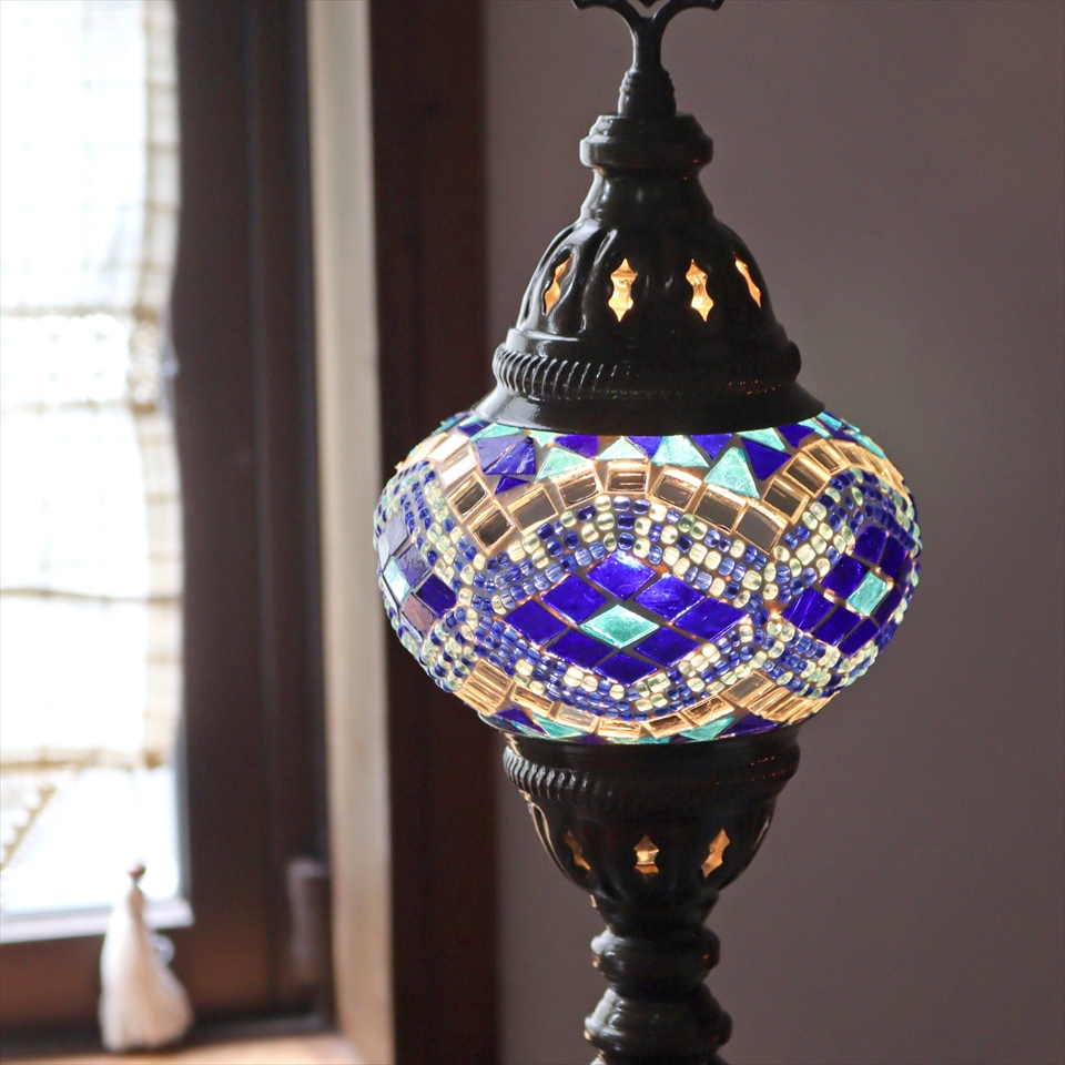 - トルコランプ モザイクテーブルランプ 直径13cm 全高36cm ブルー/アーガイル