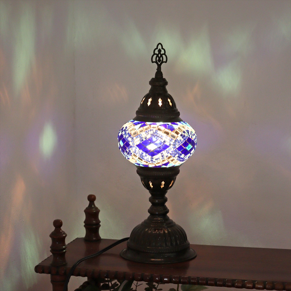 トルコランプ モザイクテーブルランプ 直径13cm 全高36cm ブルー/アーガイル