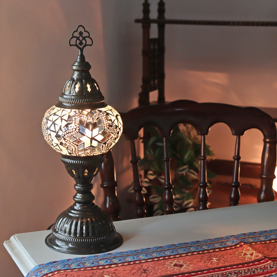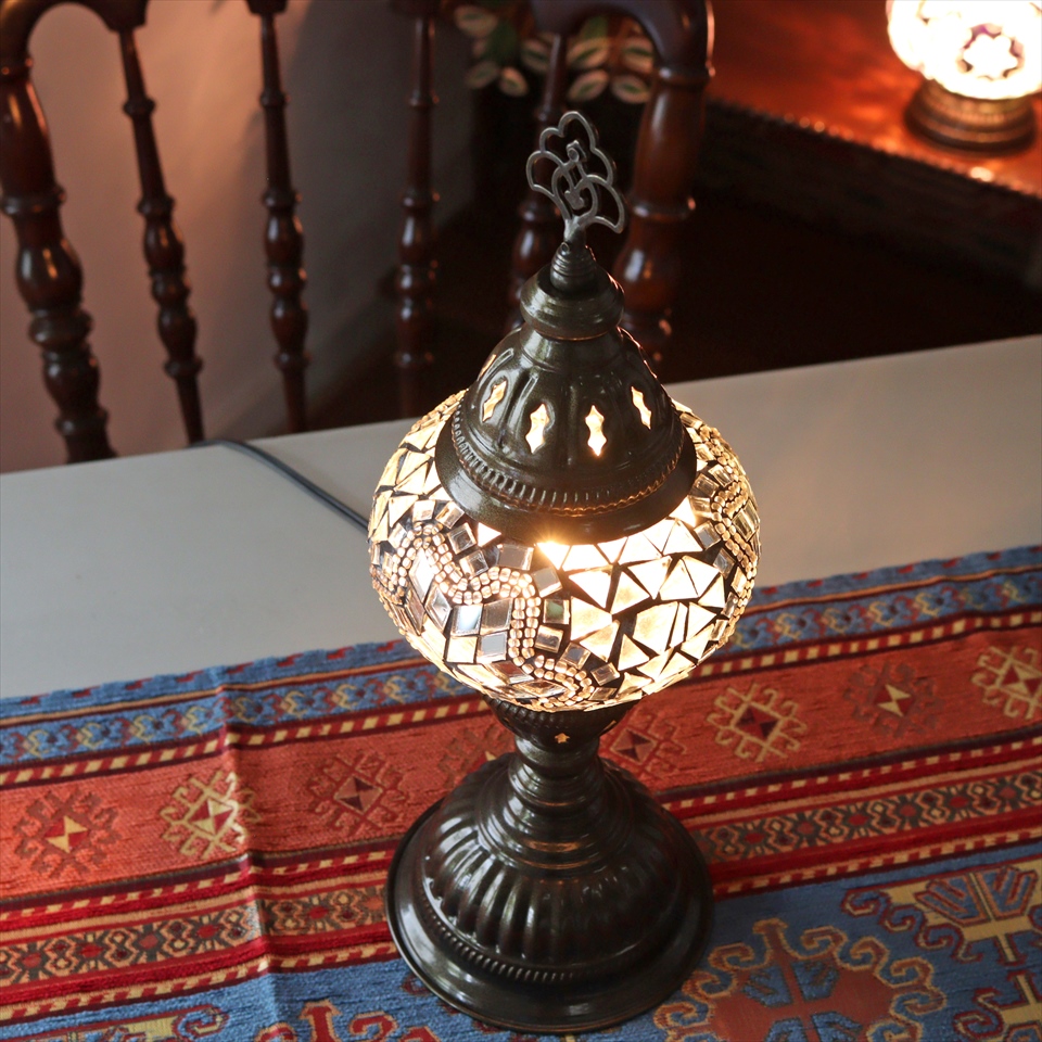 - トルコランプ モザイクテーブルランプ 直径13cm 全高36cm ホワイト