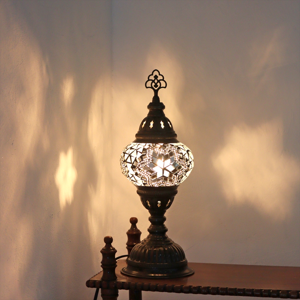 トルコランプ モザイクテーブルランプ 直径13cm 全高36cm ホワイト