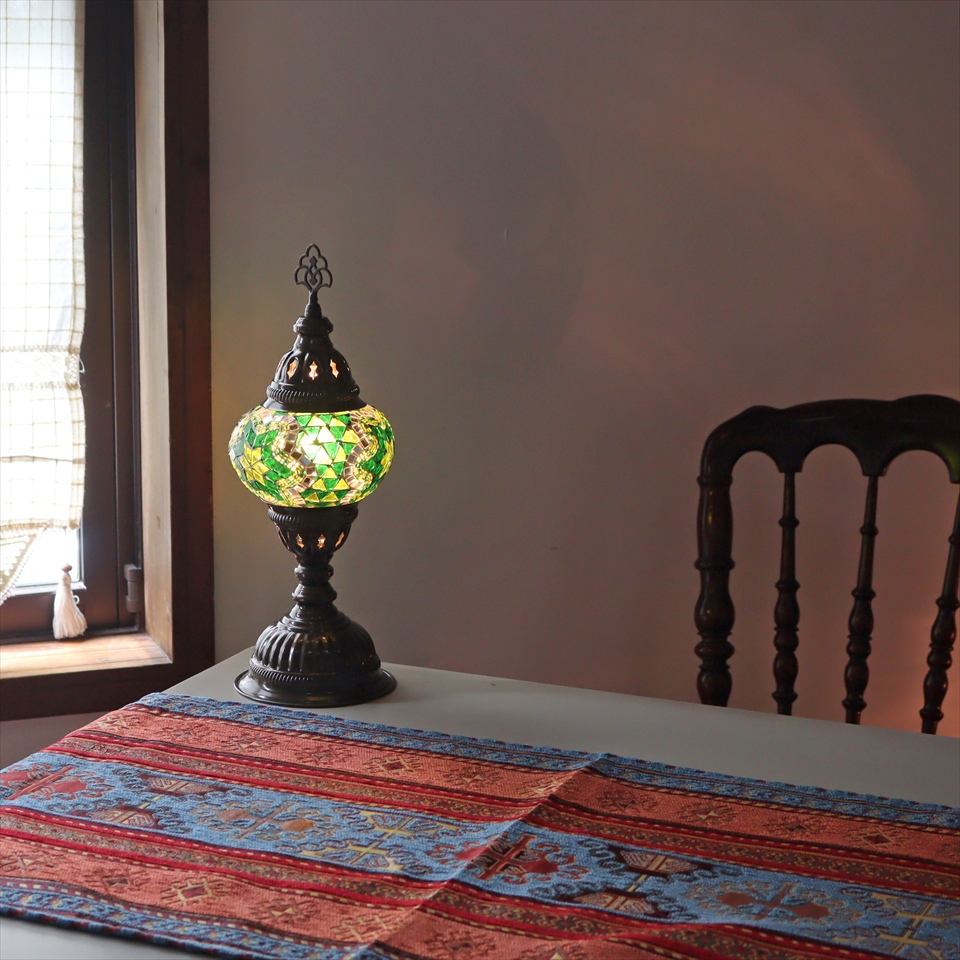 - トルコランプ モザイクテーブルランプ 直径13cm 全高36cm グリーン