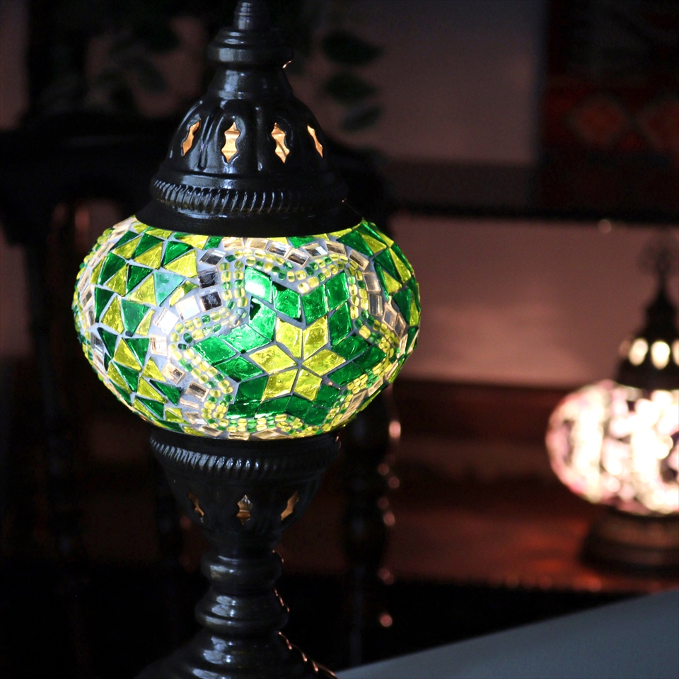 トルコランプ モザイクテーブルランプ 直径13cm 全高36cm グリーン