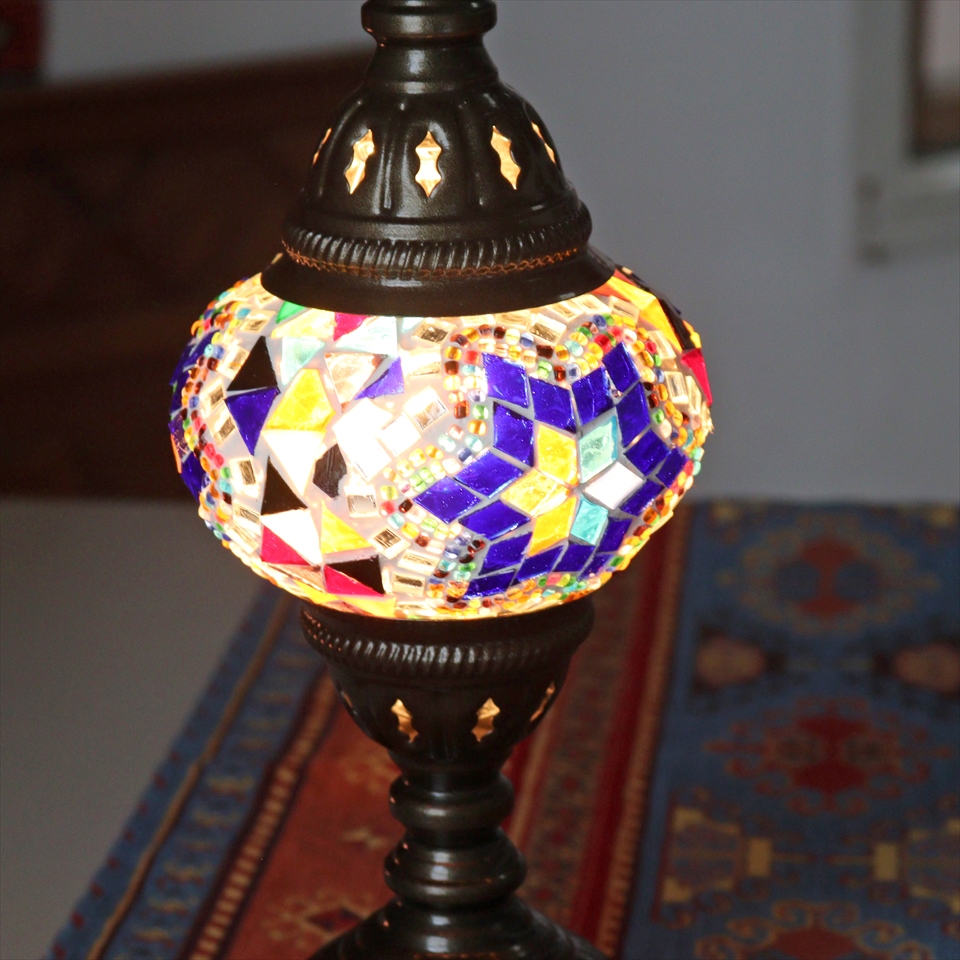 - トルコランプ モザイクテーブルランプ 直径13cm 全高36cm ミックスカラー