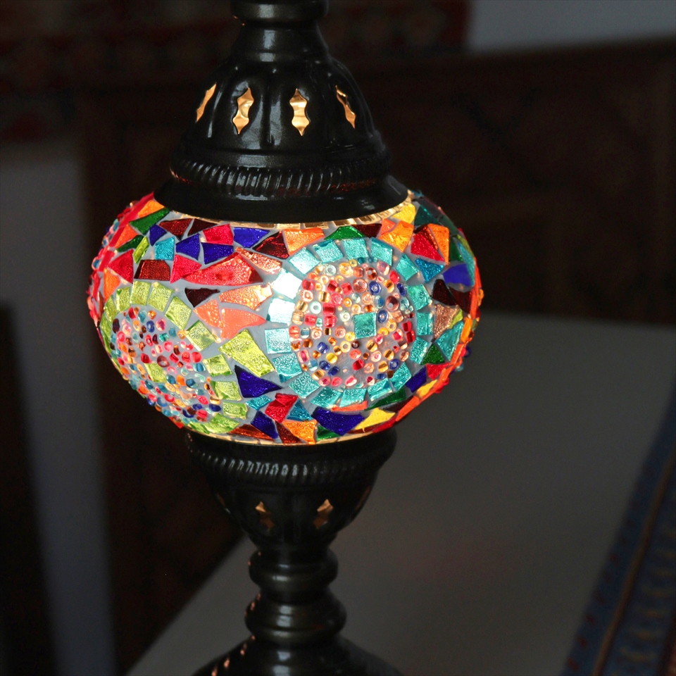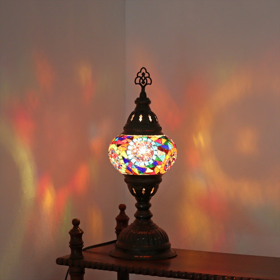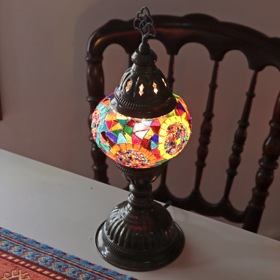 - トルコランプ モザイクテーブルランプ 直径13cm 全高36cm ミックスカラー