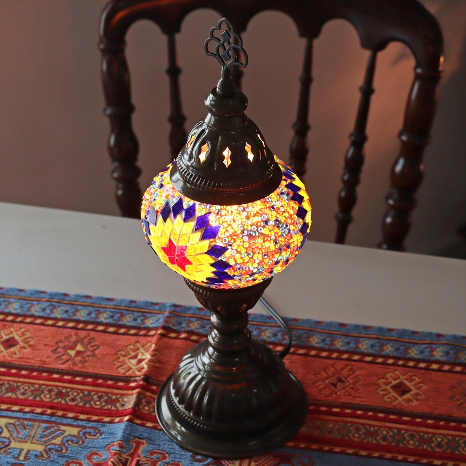 - トルコランプ モザイクテーブルランプ 直径13cm 全高36cm ミックスカラー