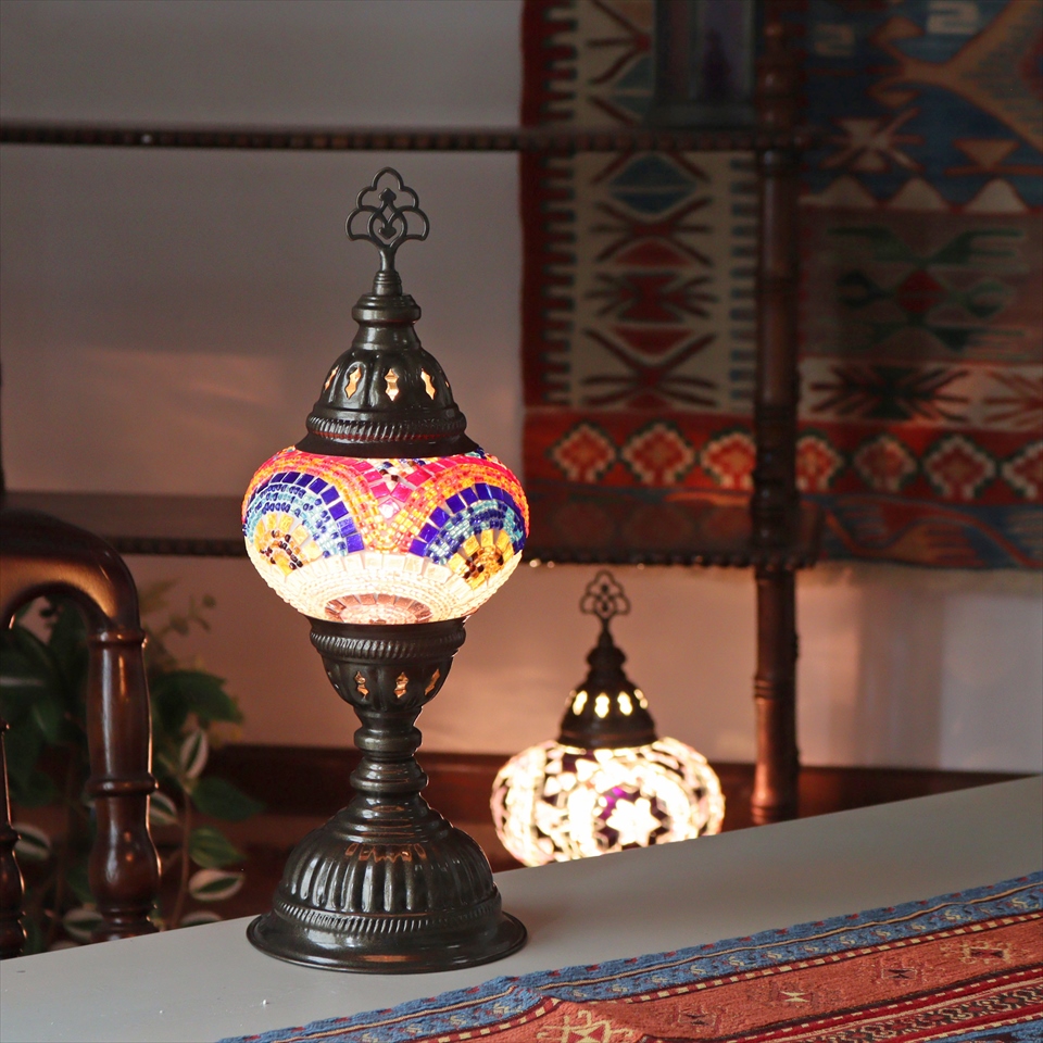 - トルコランプ モザイクテーブルランプ 直径13cm 全高36cm ミックスカラー