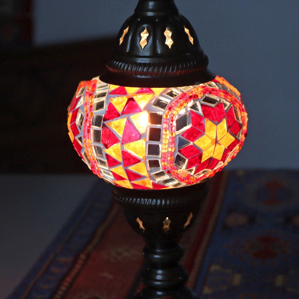 - トルコランプ モザイクテーブルランプ 直径13cm 全高36cm オレンジ