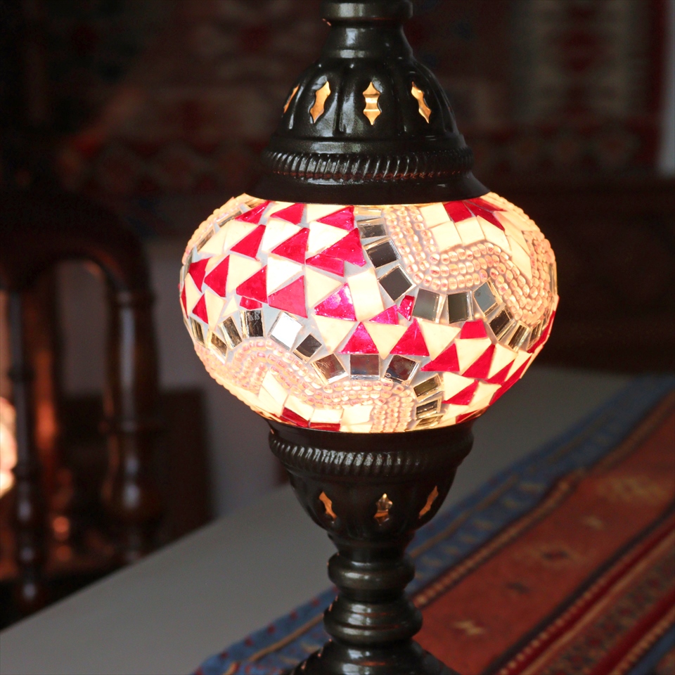 - トルコランプ モザイクテーブルランプ 直径13cm 全高36cm ピンク