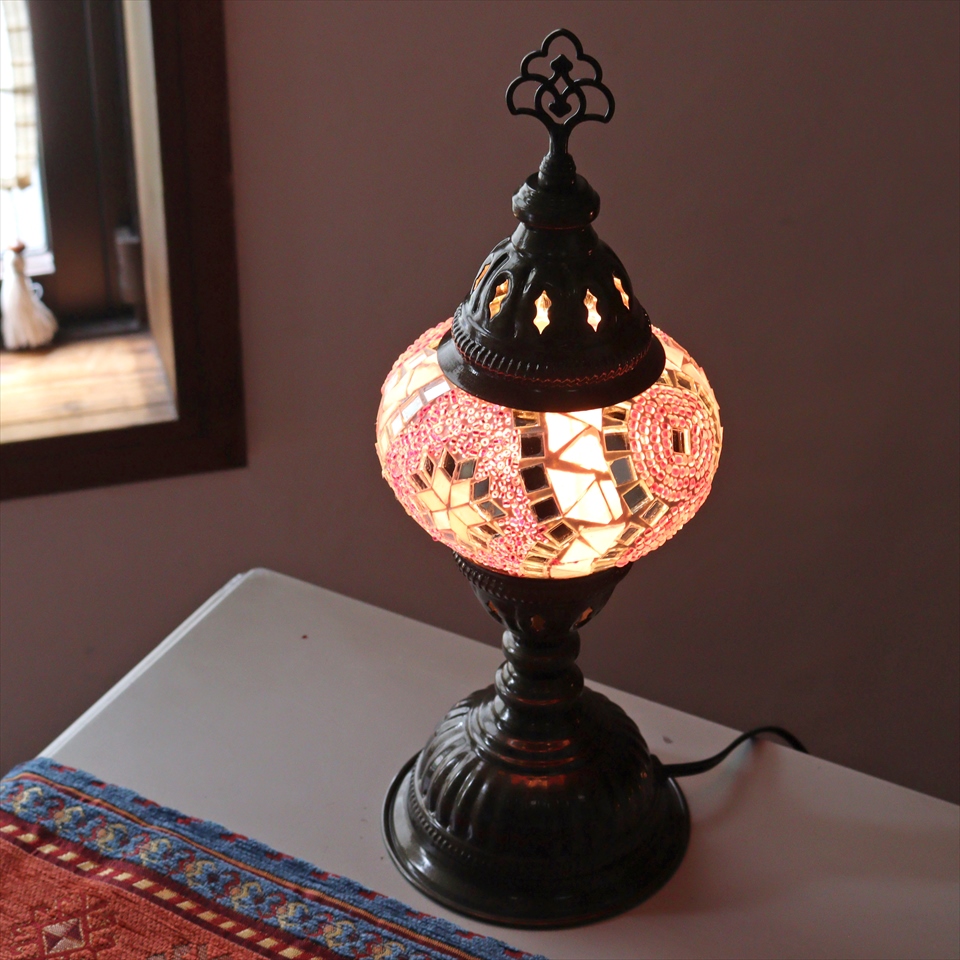 - トルコランプ モザイクテーブルランプ 直径13cm 全高36cm ピンク