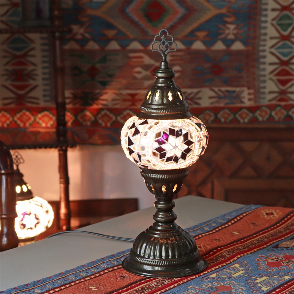 - トルコランプ モザイクテーブルランプ 直径13cm 全高36cm パープル