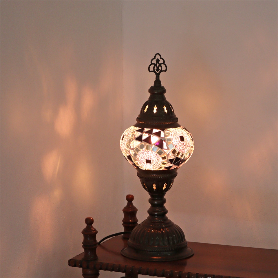 トルコランプ モザイクテーブルランプ 直径13cm 全高36cm パープル