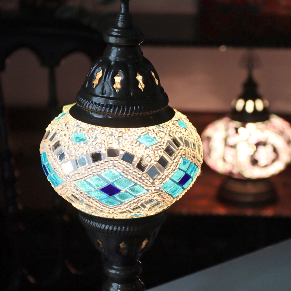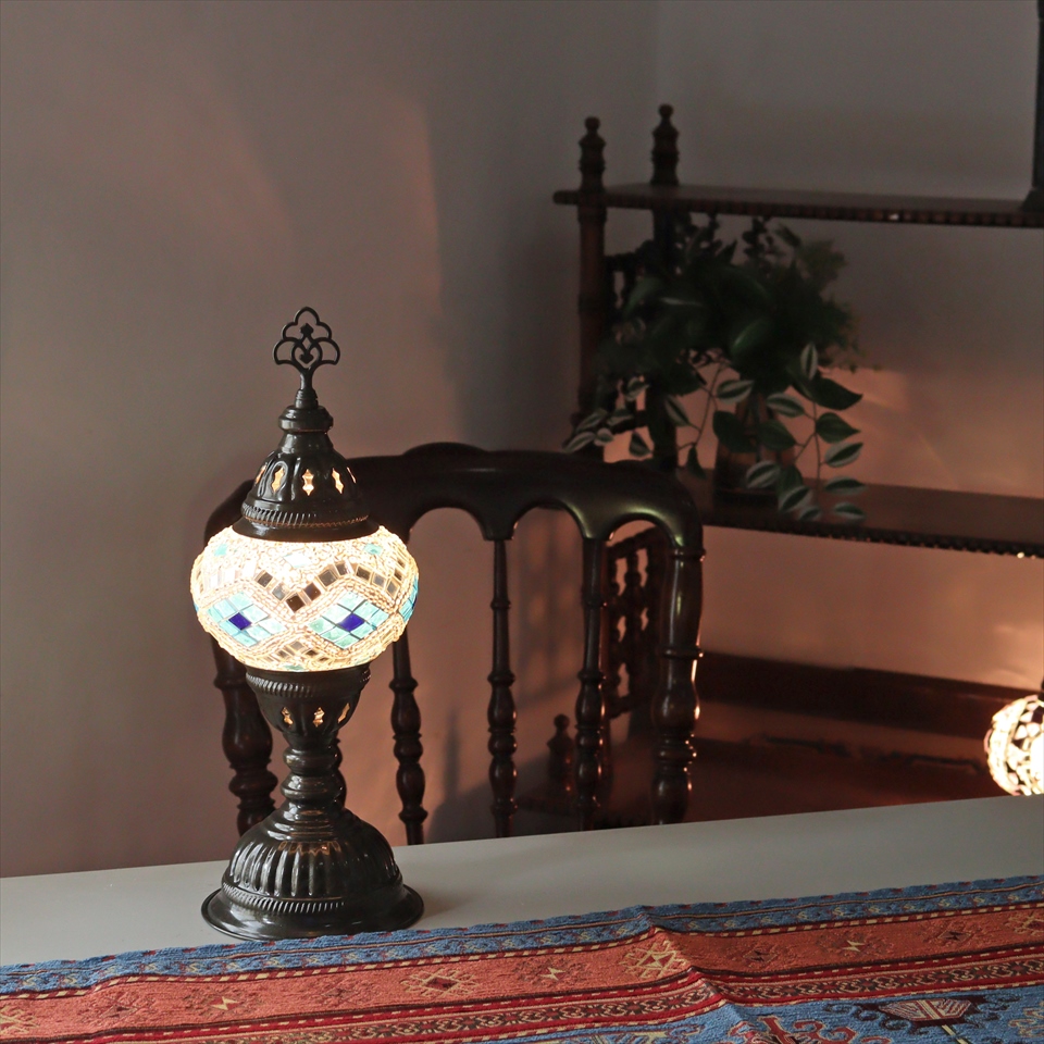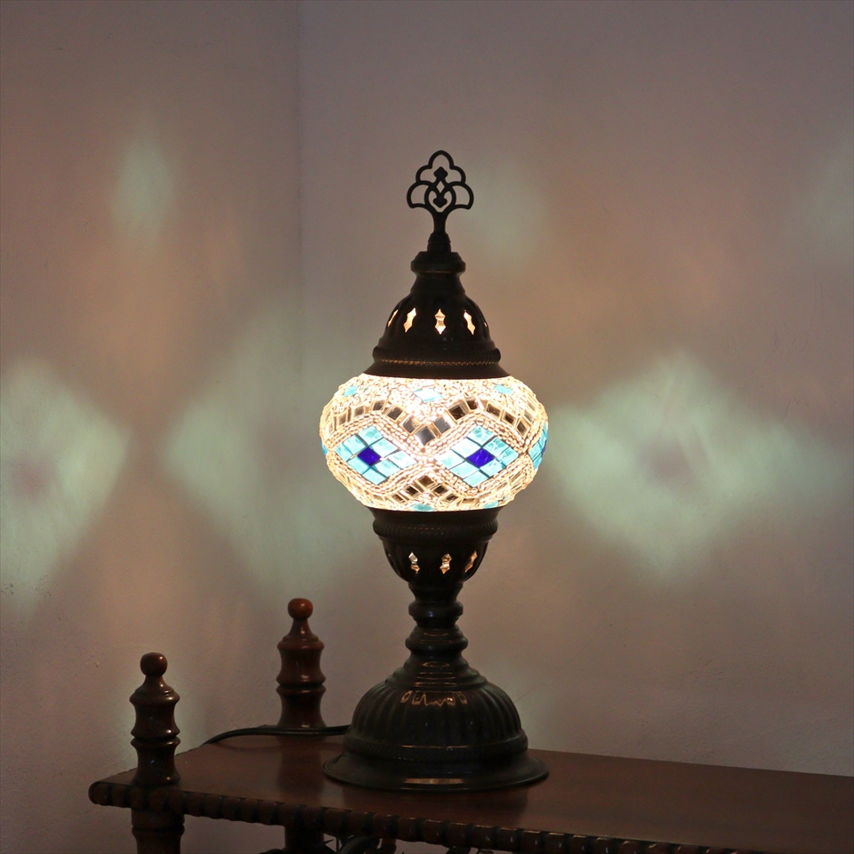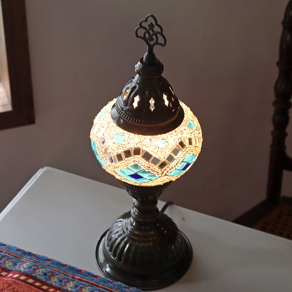 トルコランプ モザイクテーブルランプ 直径13cm 全高36cm ホワイト/ブルーアーガイル