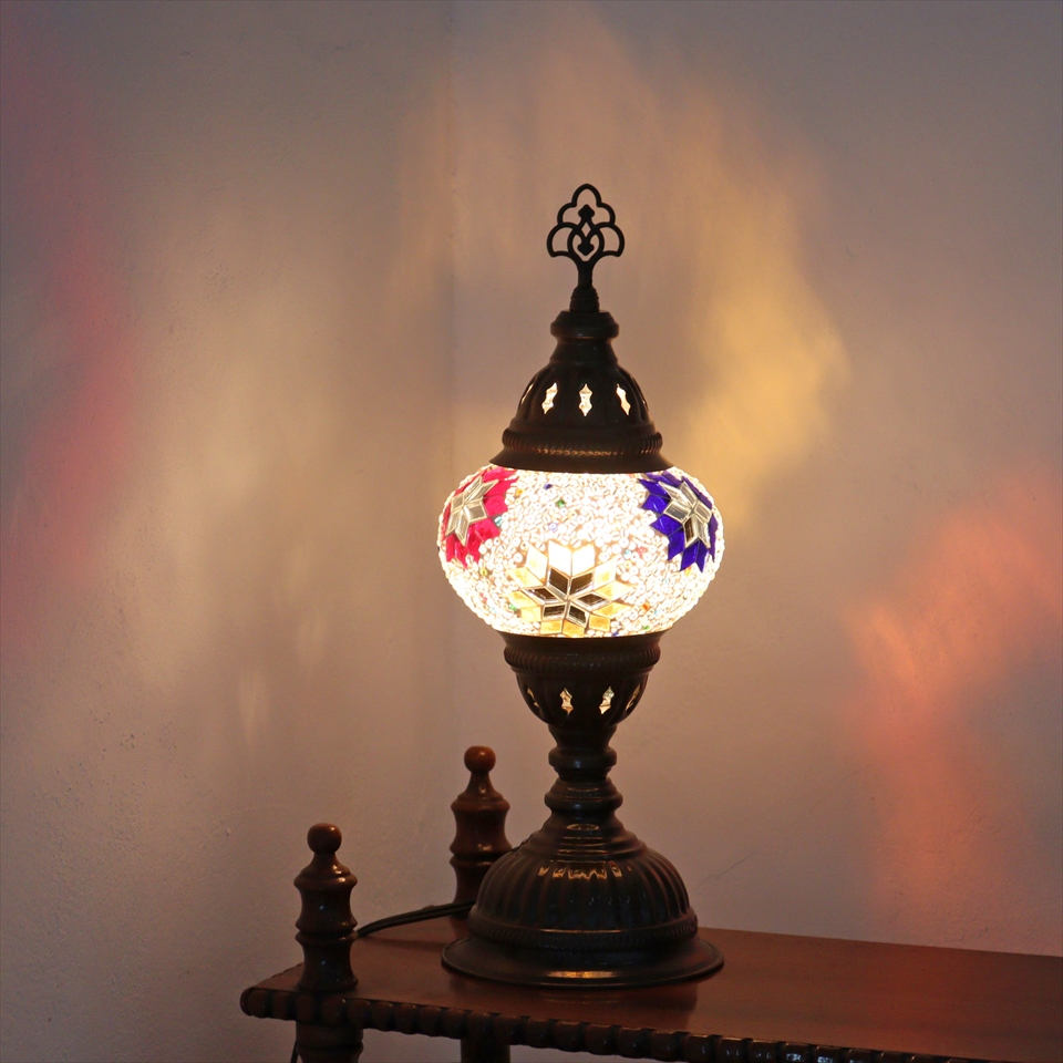 トルコランプ モザイクテーブルランプ 直径13cm 全高36cm ホワイト/カラフルフラワー