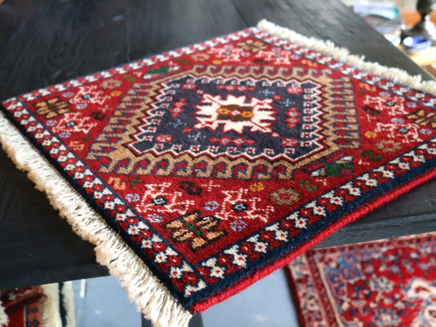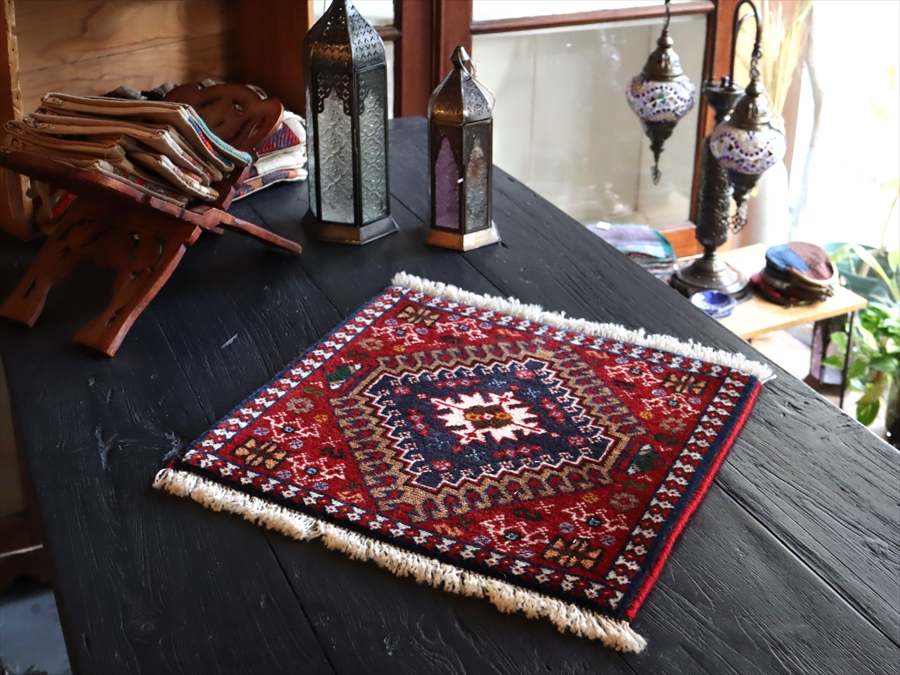 - ヤラメ 手織りラグ ミニサイズ /トライバルラグ41×43cm