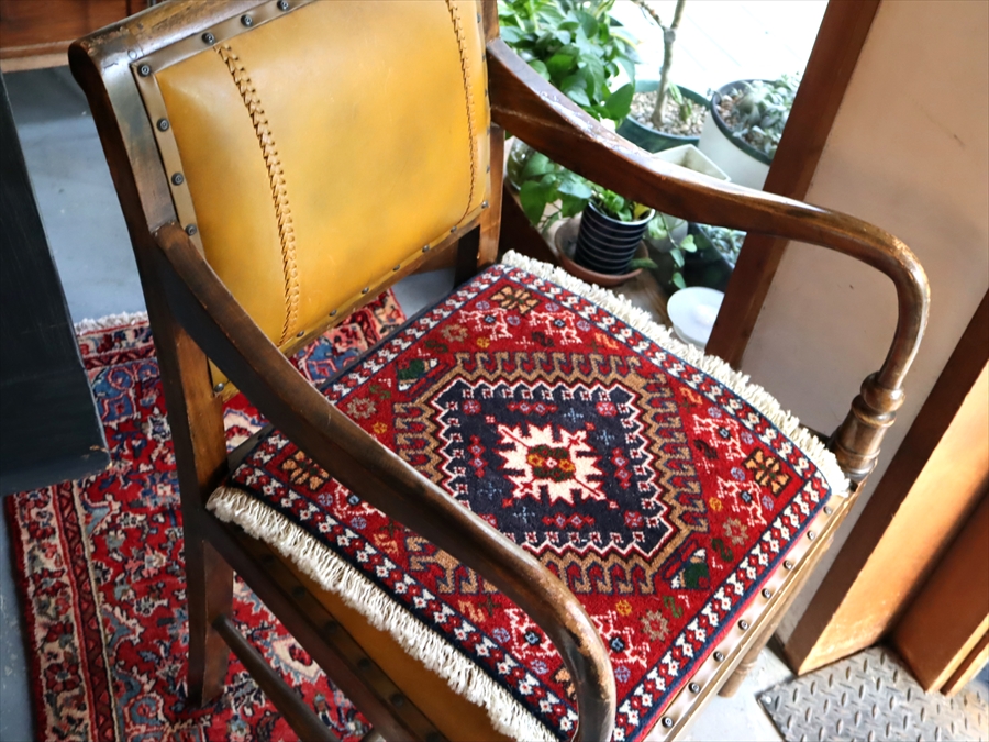 30cm角のミニサイズのラグ。小さいながらも、織りはしっかりしていて本格的です。多少ゆがみが気になりますが、ゆがみも含めて素朴な感じをお楽しみいただければと思います。