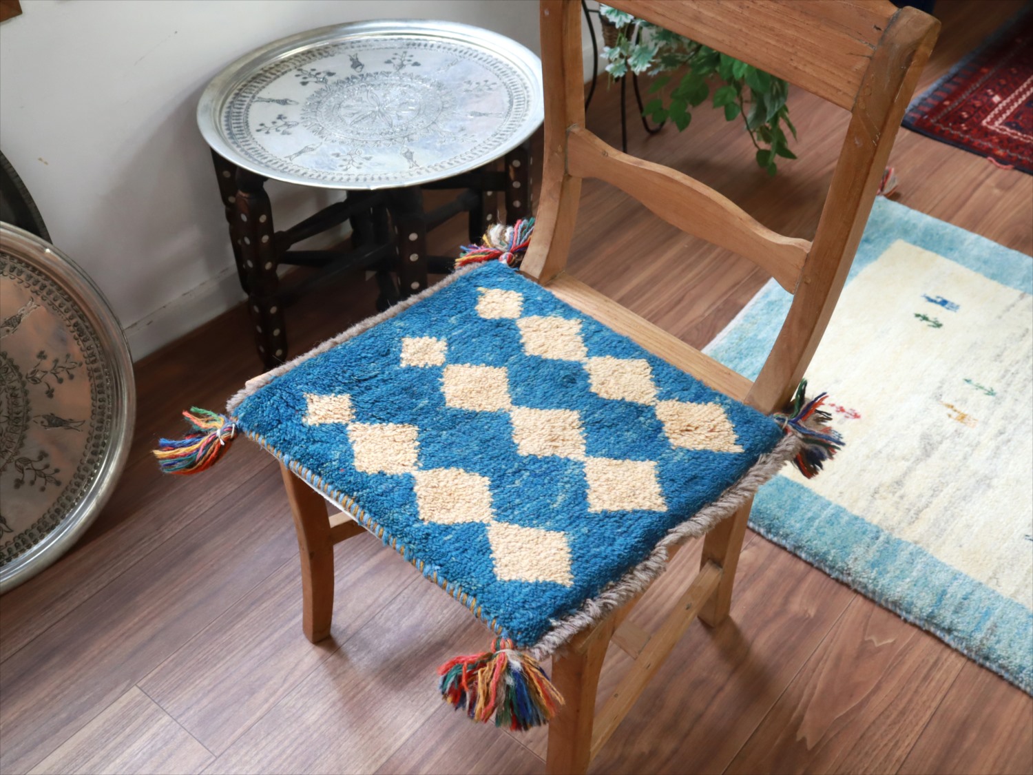 ギャッベ イラン産手織り 座布団サイズ 39x36cm ブルー