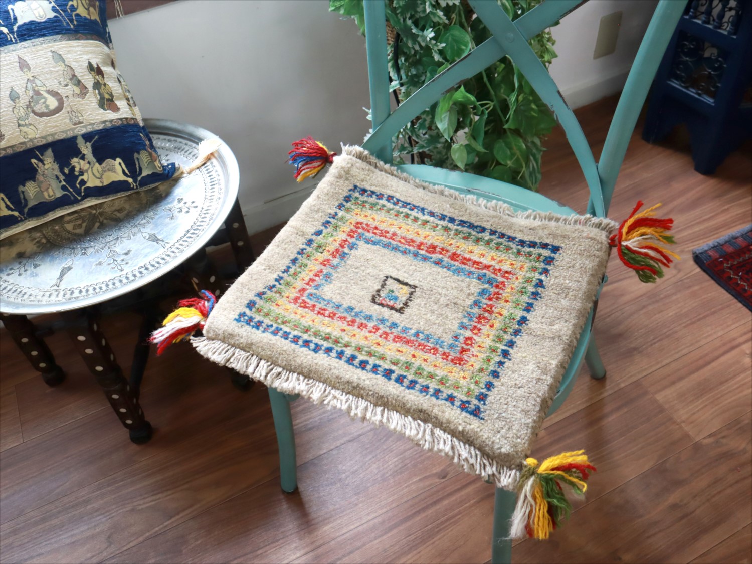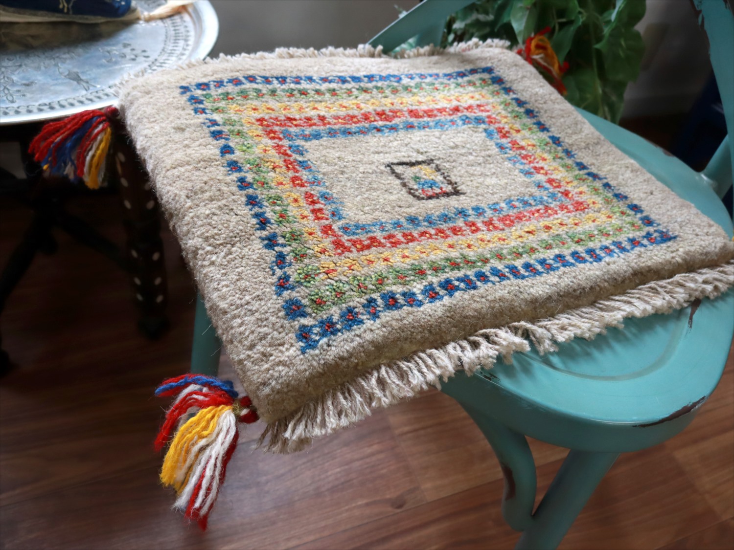 ギャッベ イラン産手織り 座布団サイズ 35x41cm ナチュラルアイボリー