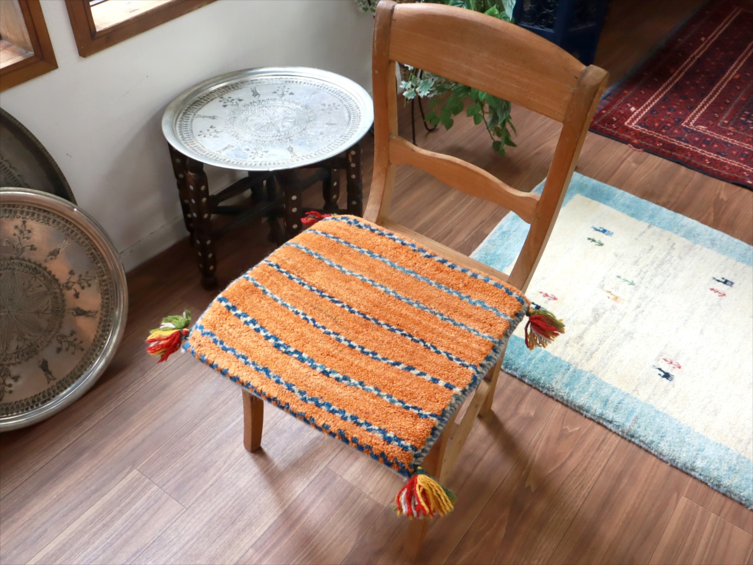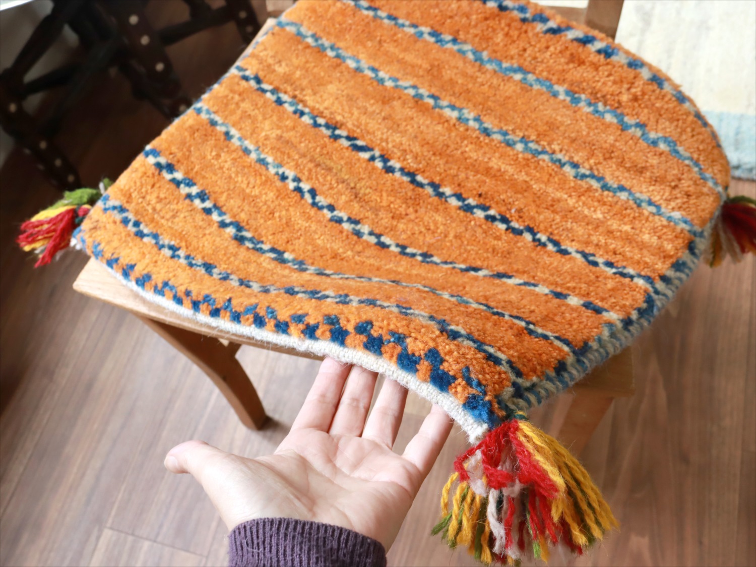 ギャッベ イラン産手織り 座布団サイズ 42x44cm オレンジ