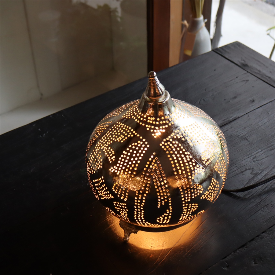 Key:モロッコランプ BOHO モロッコランタン メタルシェード ボヘミアンスタイル シルバー メタルランプ インダストリアル テーブルランプ テーブルライト 間接照明 室内照明 店舗照明 Morroco Lamp Egyptian lamp Egypt craftmanship