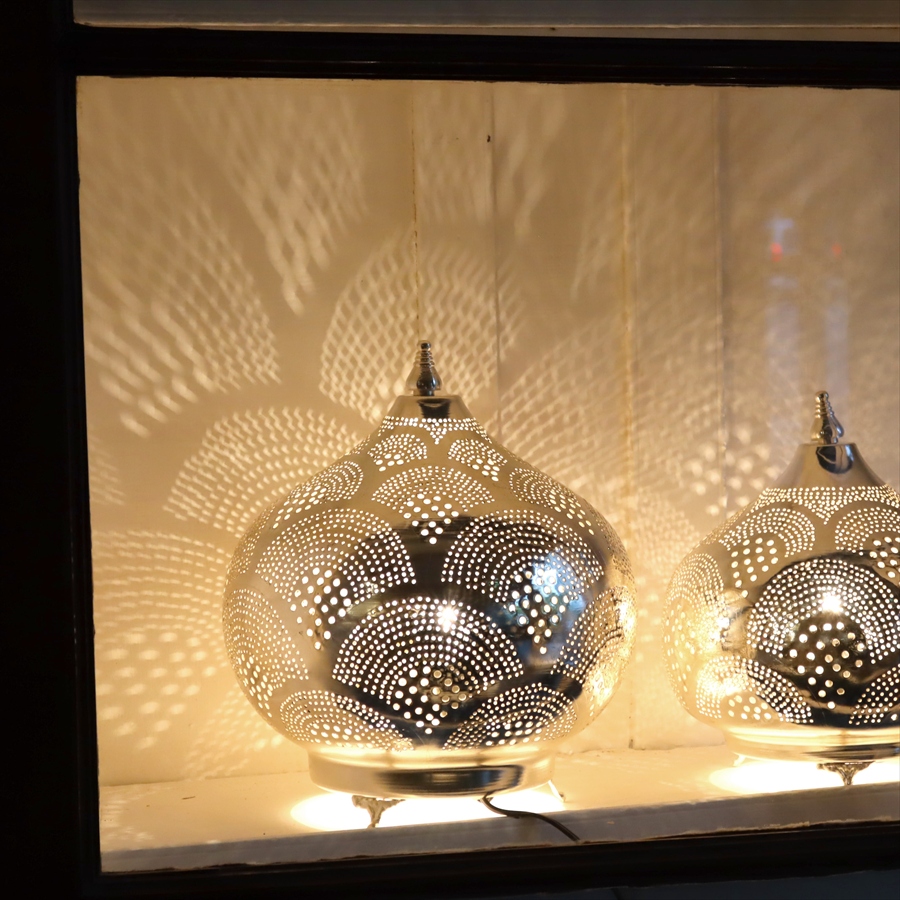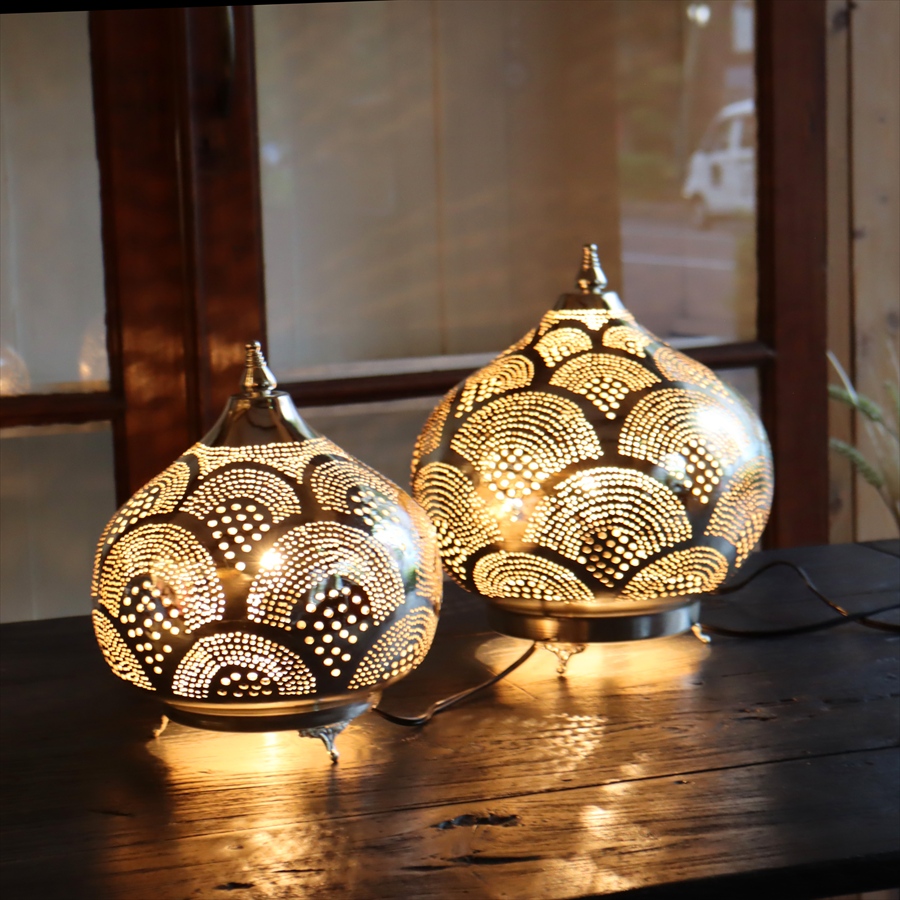 Key:モロッコランプ BOHO モロッコランタン メタルシェード ボヘミアンスタイル シルバー メタルランプ インダストリアル テーブルランプ テーブルライト 間接照明 室内照明 店舗照明 Morroco Lamp Egyptian lamp Egypt craftmanship