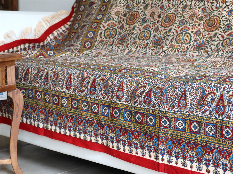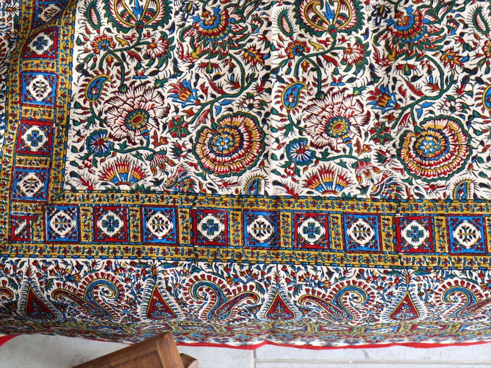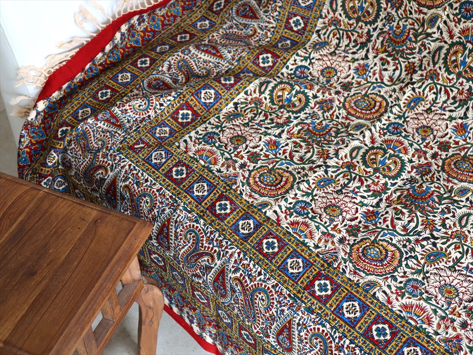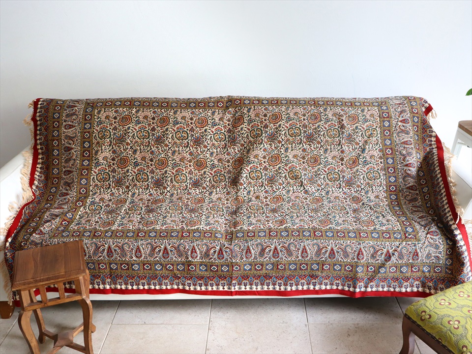 【15%OFF】ペルシャ更紗 イラン手染め布 192x131cm アンティークデザイン テーブルクロス ソファカバー