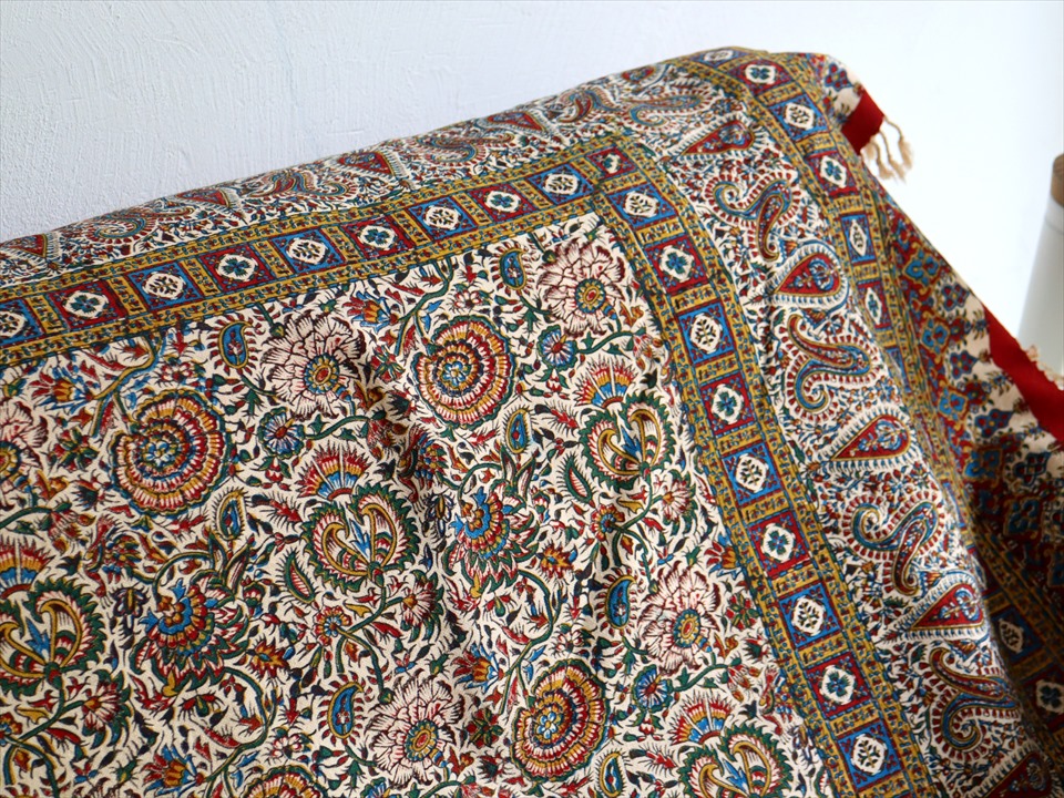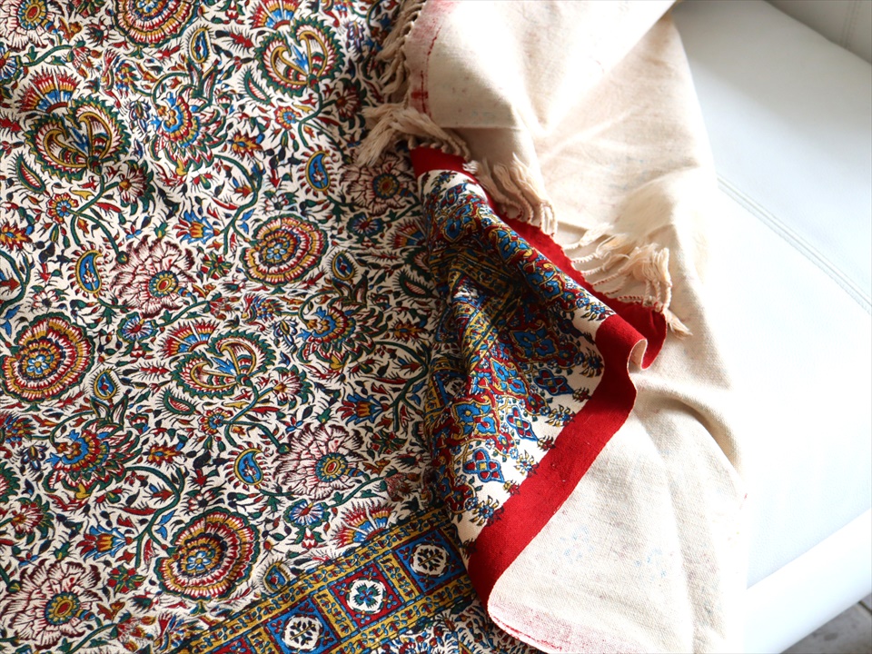 イランの古都イスファハン伝統のペルシャ更紗「ガラムカール」。テーブルクロスやソファカバーなどマルチに使える布です。