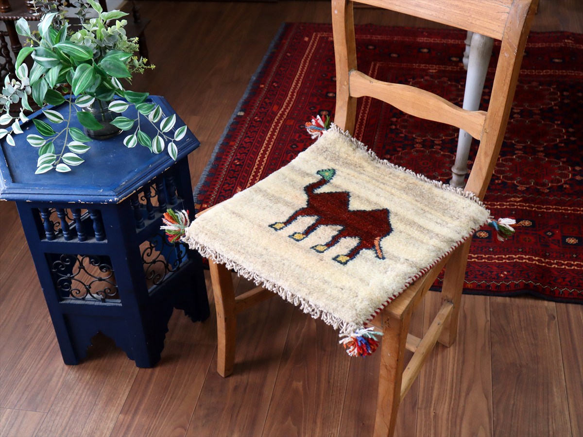 【15%OFF】ギャッベ イラン産手織り 座布団サイズ 41×40cm ナチュラルアイボリー ラクダ