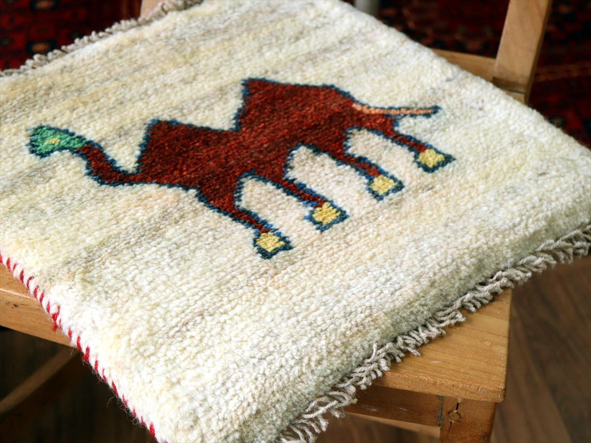 - 【15%OFF】ギャッベ イラン産手織り 座布団サイズ 41×40cm ナチュラルアイボリー ラクダ