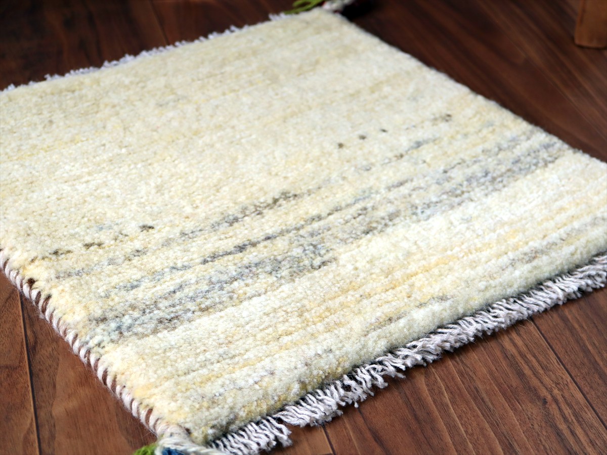 【15%OFF】ギャッベ イラン産手織り 座布団サイズ 40×40cm ナチュラルアイボリーグラデーション