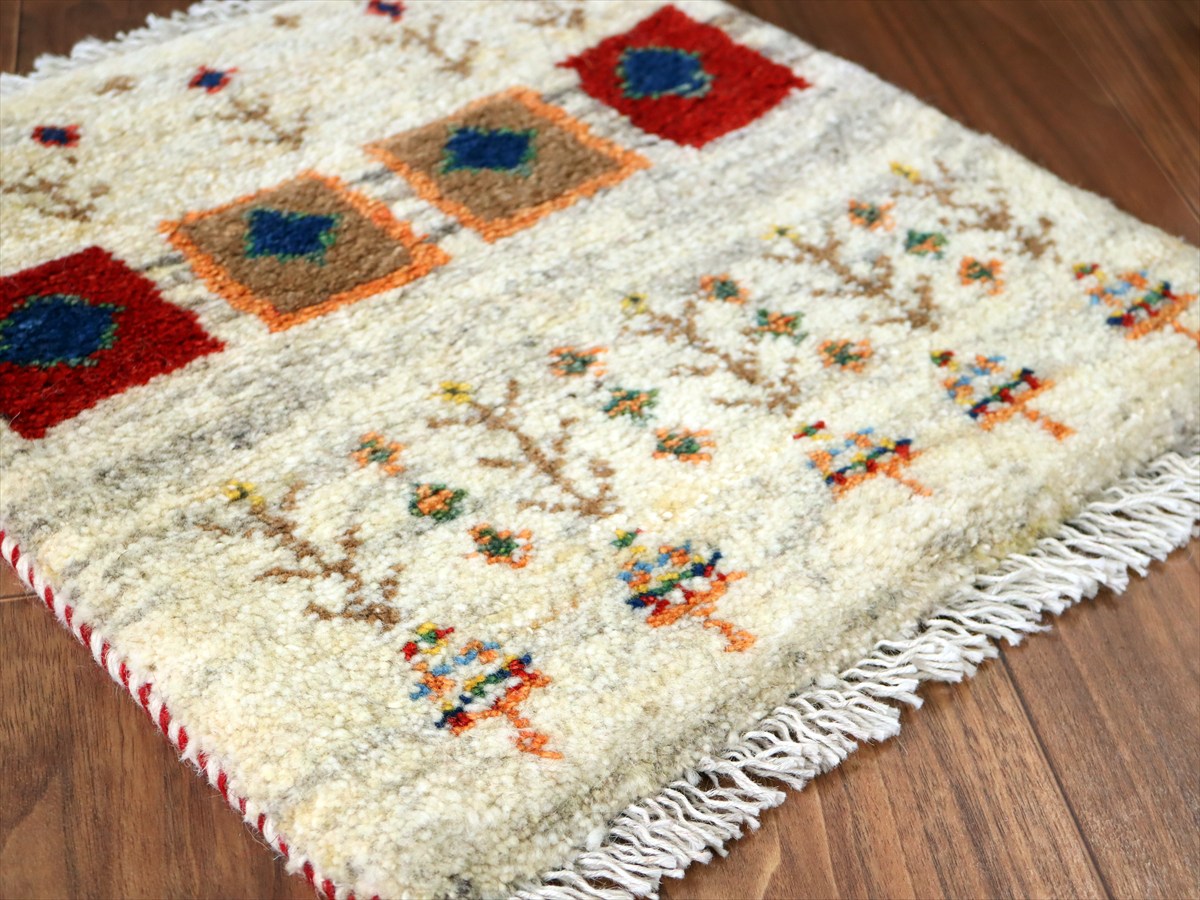 - 【15%OFF】ギャッベ イラン産手織り 座布団サイズ 43×40cm ナチュラルアイボリー 生命の木