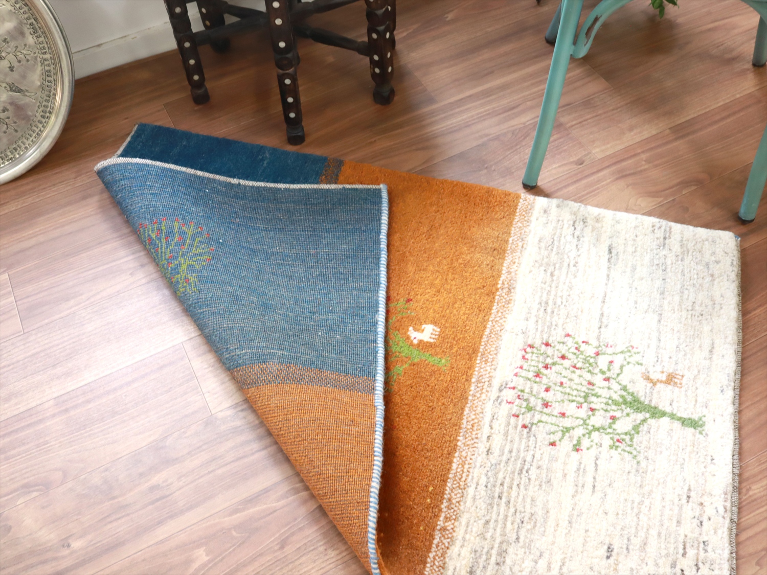 - ギャッベ イラン 手織りラグ 120x80cm Gabbeh Nomad 花をつけた生命の木の風景
