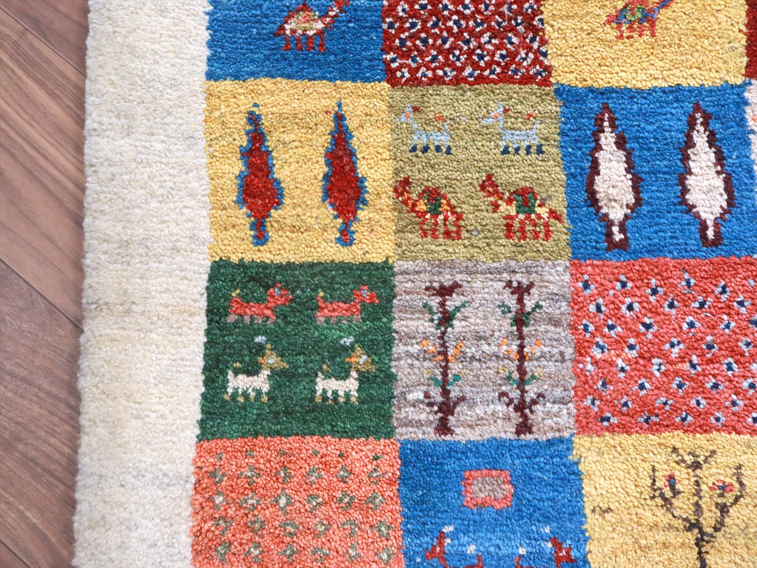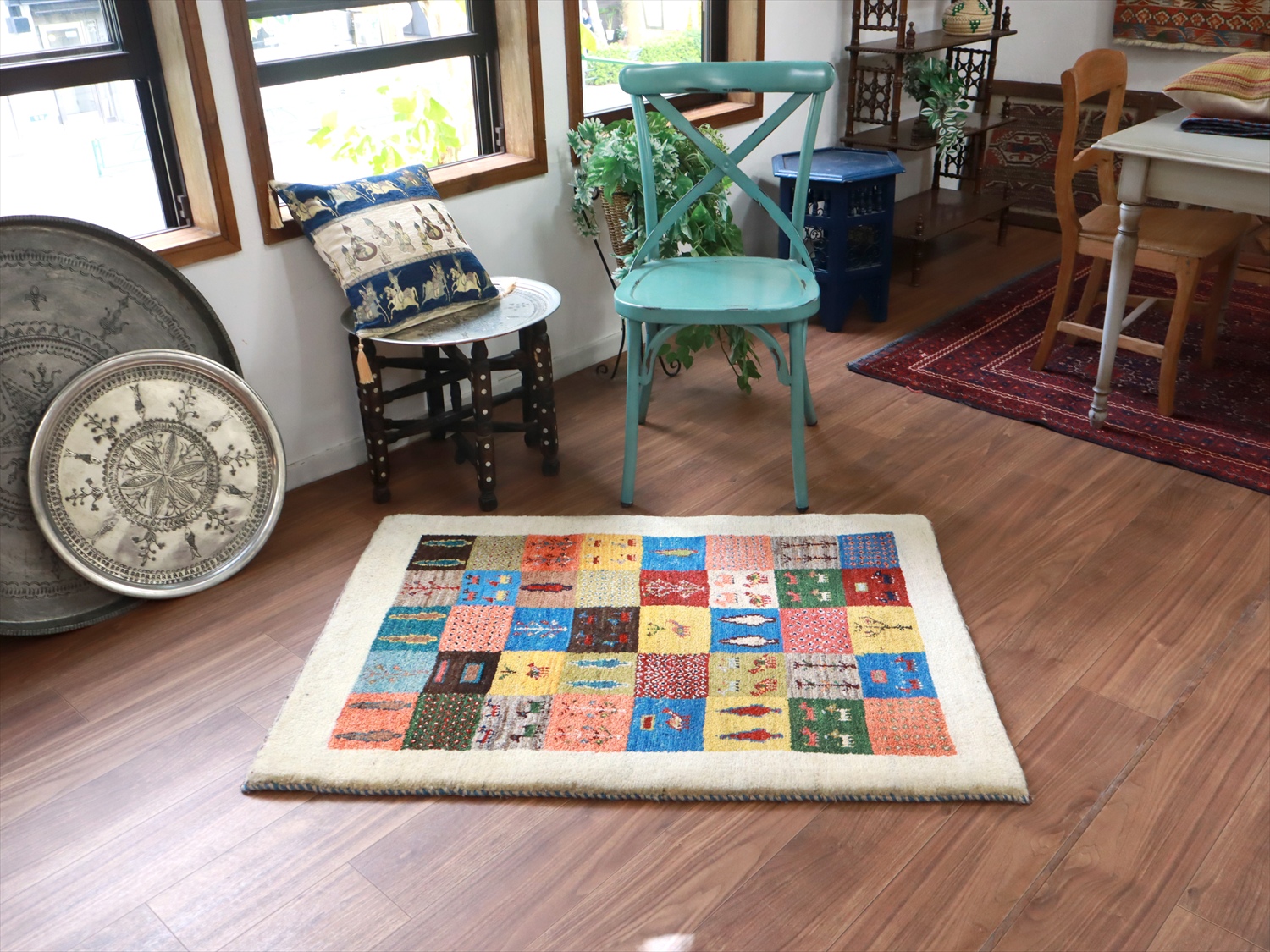 ギャッベ イラン 手織りラグ 120x85cm Gabbeh Nomad カラフルなモザイクのようなタイルデザイン