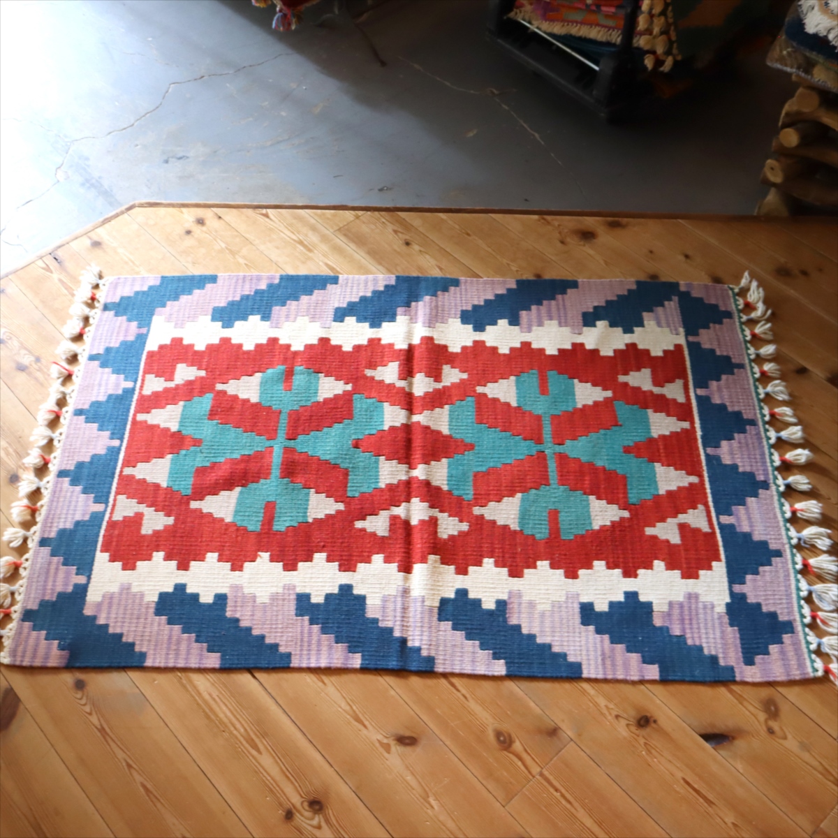トルコキリムらしい伝統的なスタイルで織られているカイセリ産のキリムです。カイセリ地方は、トルコの中央部、カッパドキアに近く、古い時代から多くの諸品が集まり、現在でも絨毯やキリム産業の中心となっています。工業製品にはないあたたかさがあり、我が家のキリムとして愛着の持てる一枚になってくれます。
