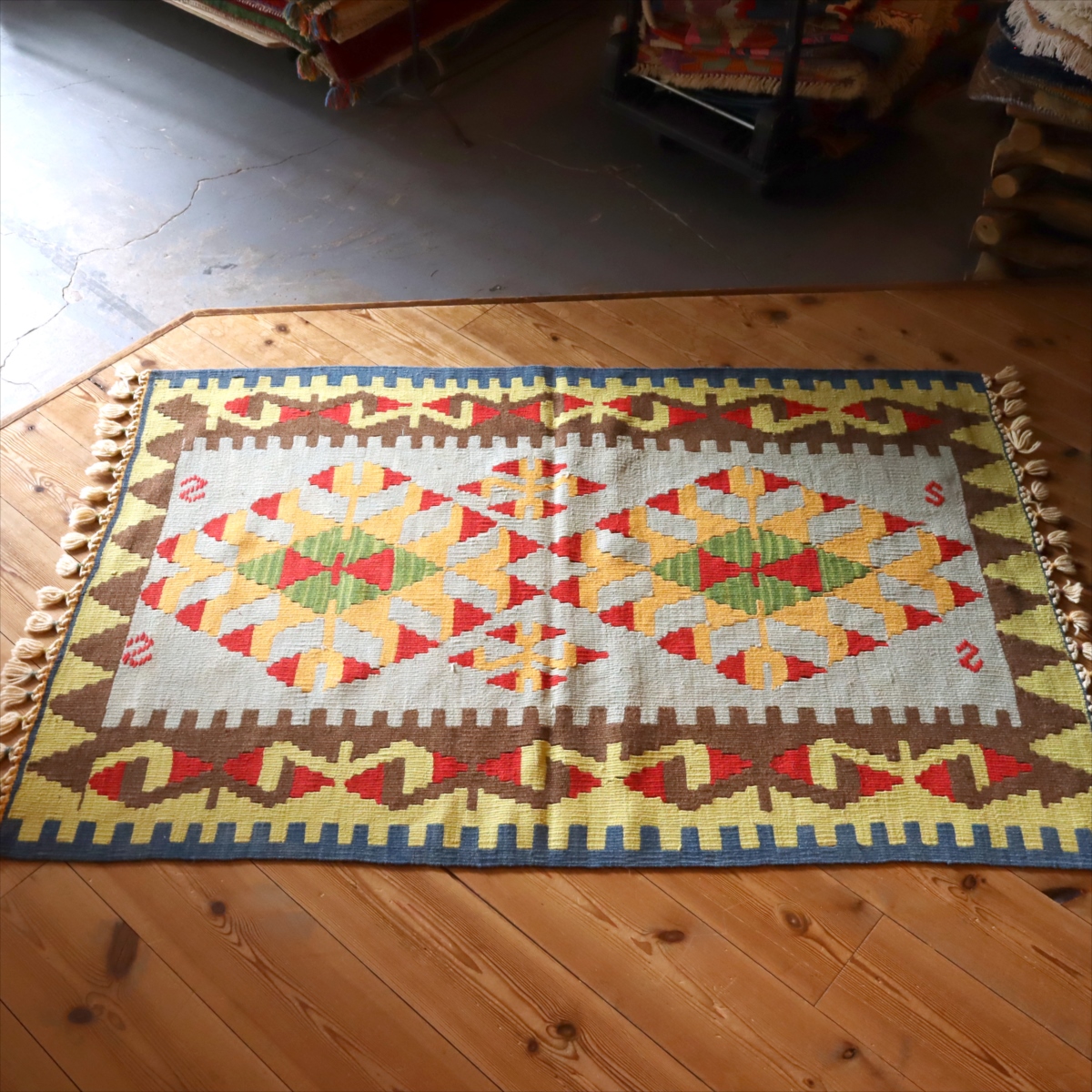 key:Turkish Rug, Turkish Carpet, Handmade, Hand knotted, wool rug, Trial rug, BOHO, BO-HO, ラグ, カーペット, じゅうたん, 絨毯, トルコ, 手織り, ウール, ガラタバザール カイセリチェイレキ