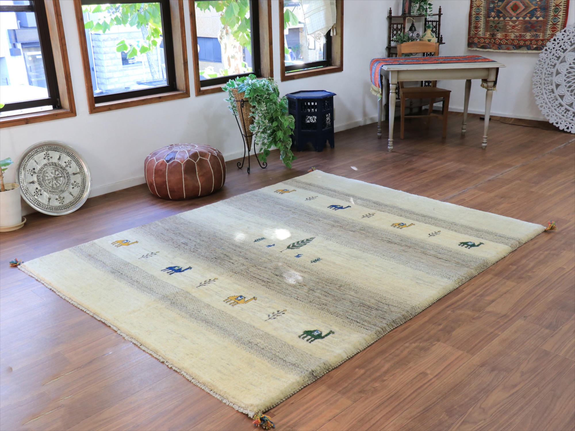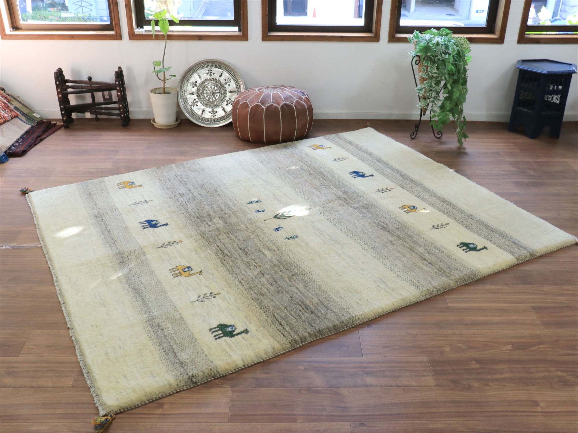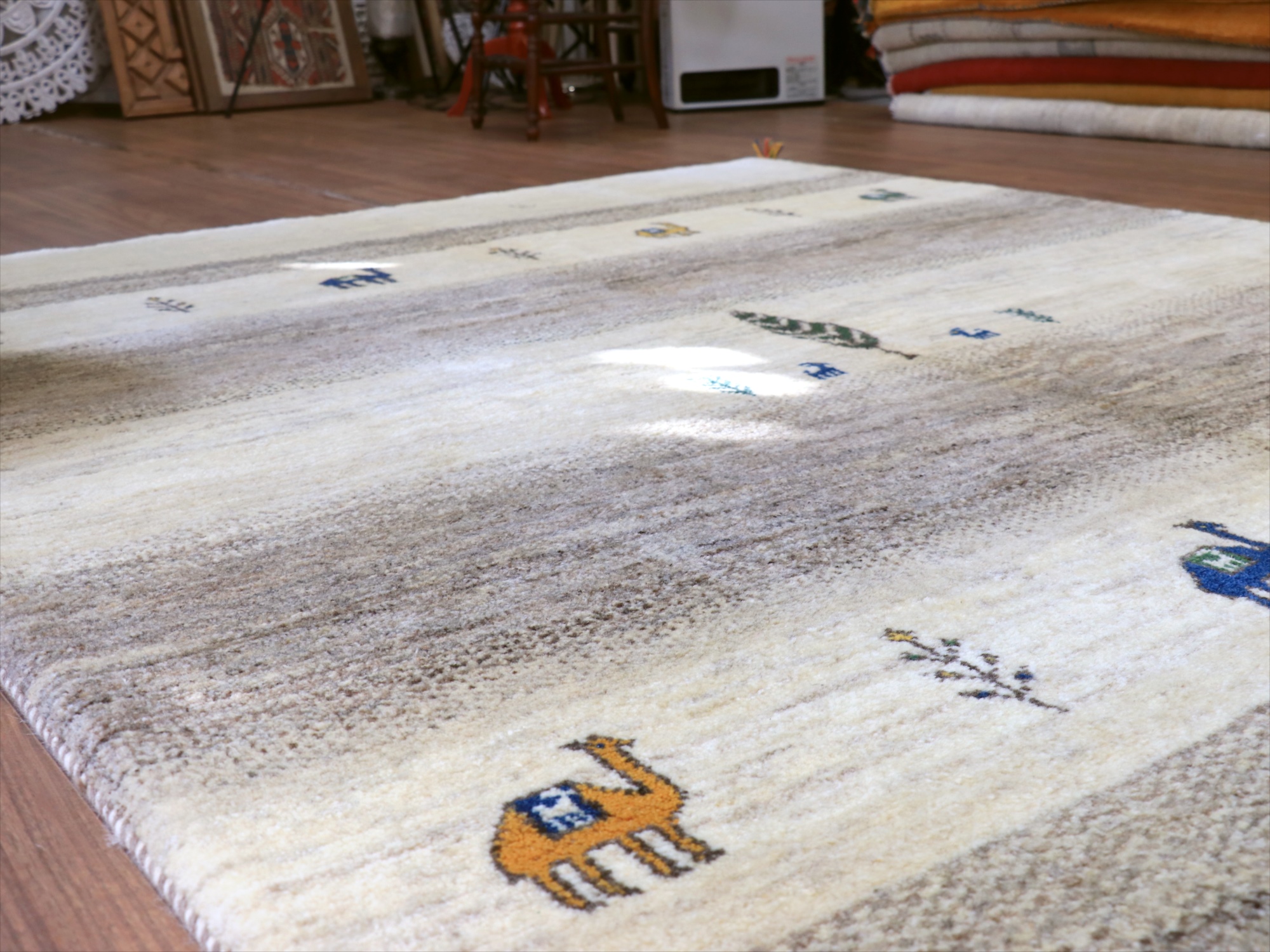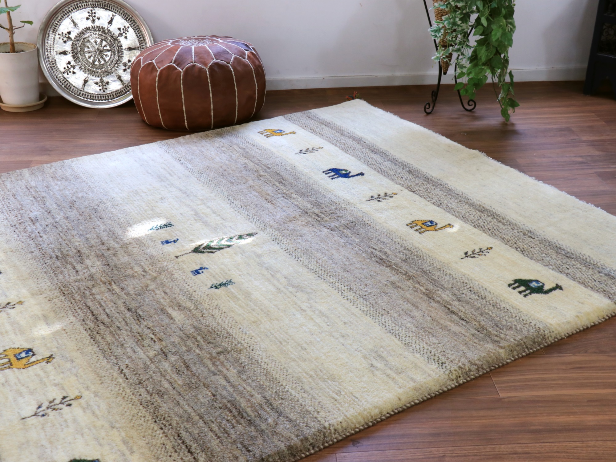 Key:ギャベ, ギャッベ, ラグ, イラン製, 手織り絨毯, 部族絨毯, カシュカイ族, ウール100%, ベージュ, ホワイト, 白, シンプル, リビング, ダイニング, ソファ前, 厚手, 東京,中野区, ガラタバザール, Gabbeh, Tribal Rug, Hand knotted, wool, Shiraz, Fars, Quashkai