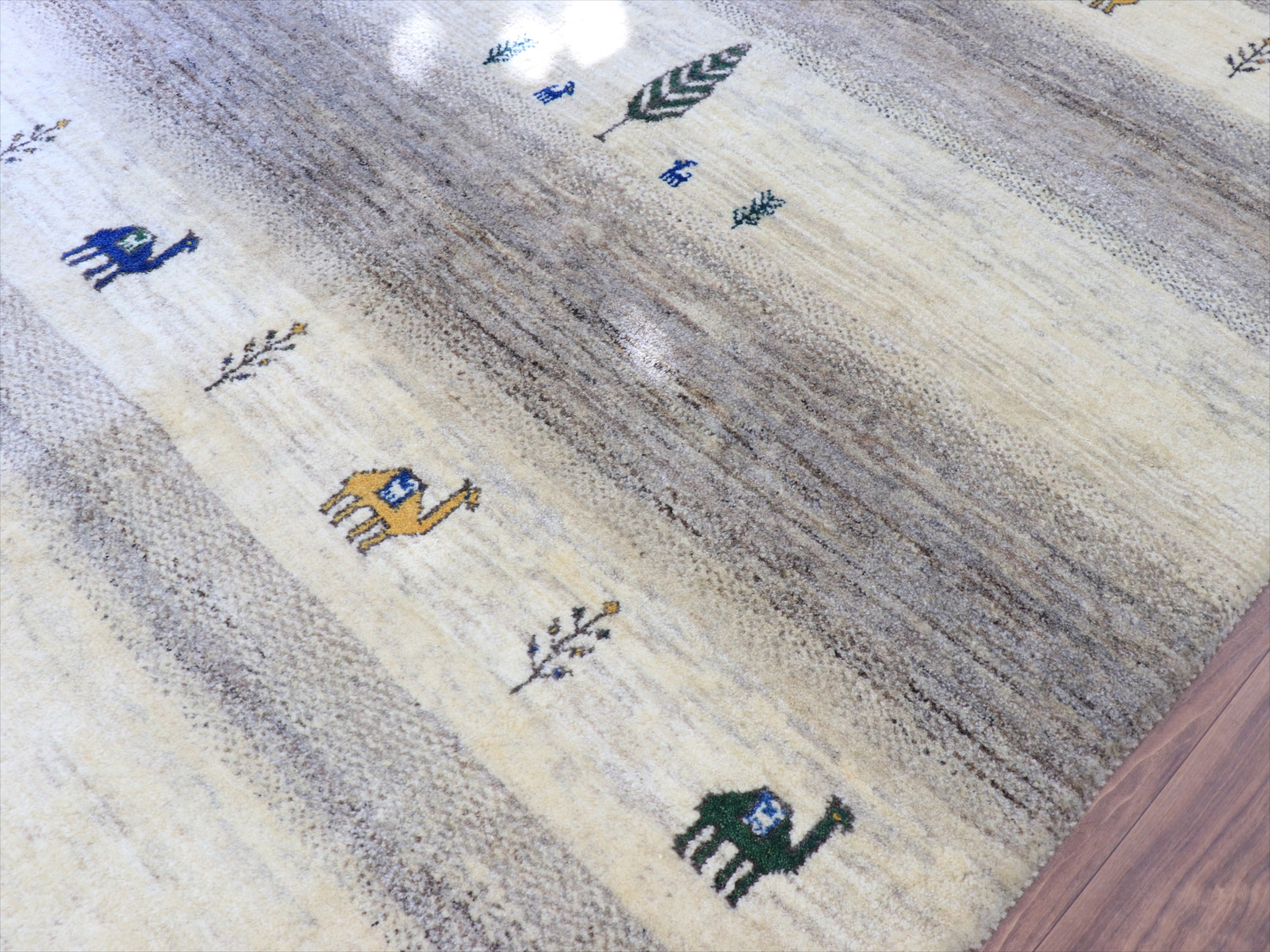 5. ギャッベ 手織りラグ イラン産 233x180cm 天然羊毛のアイボリー&グレー ラクダ