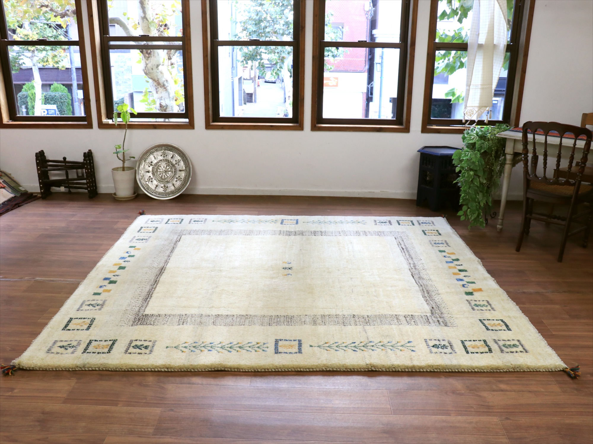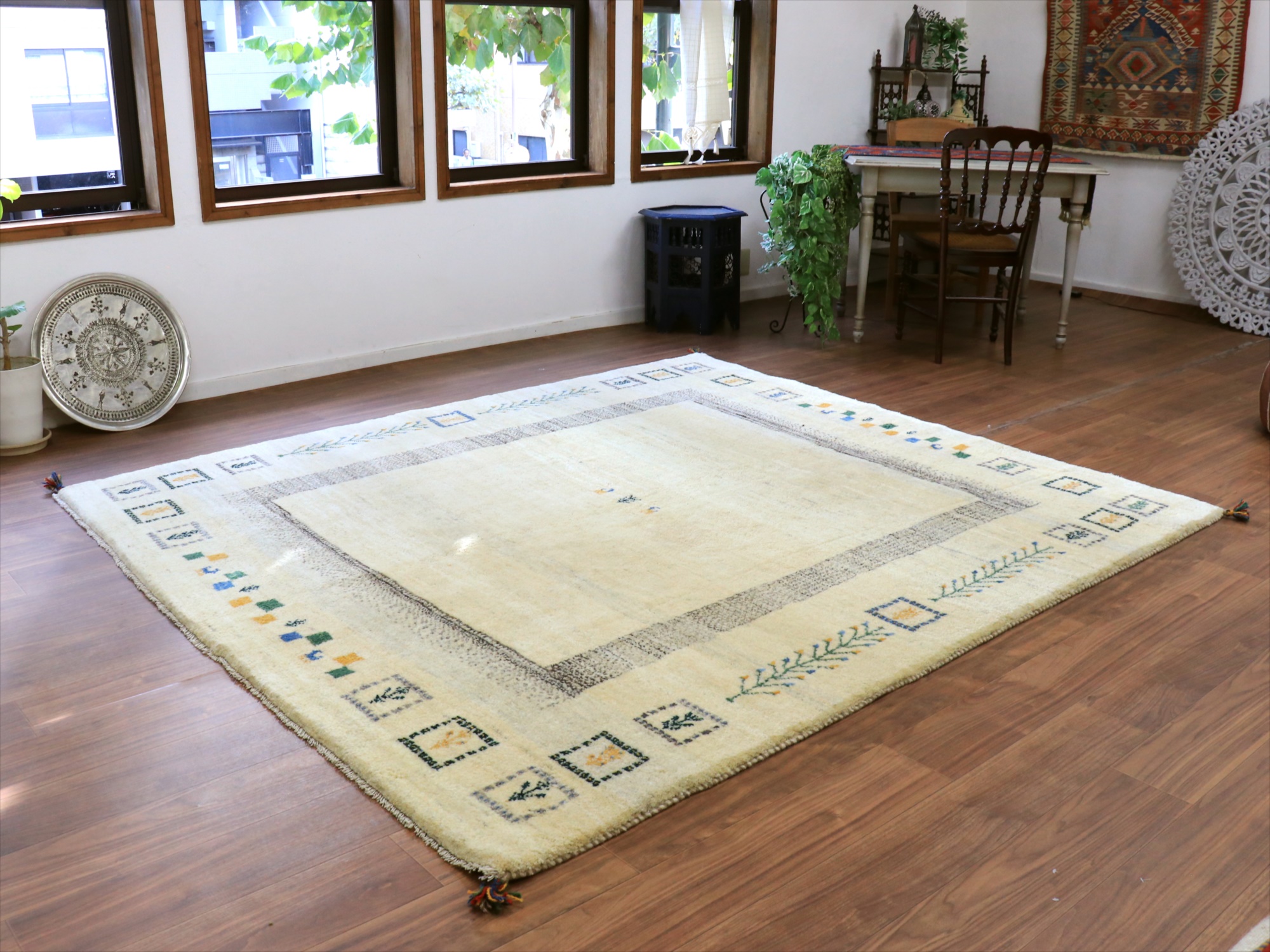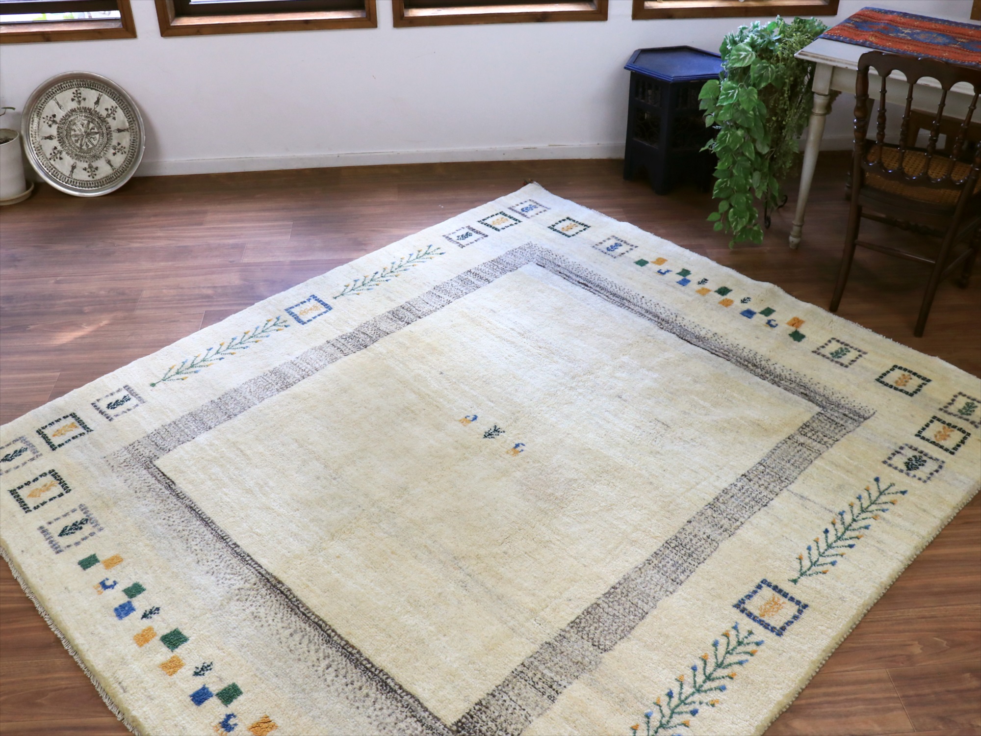 - ギャッベ 遊牧民の手織りラグ 234x200cm ナチュラルアイボリー イラン産