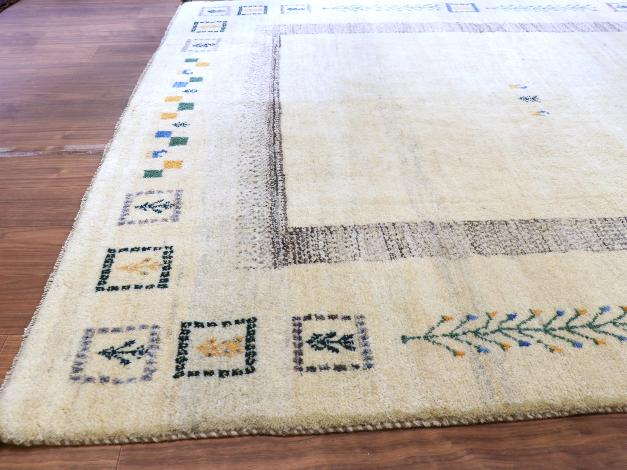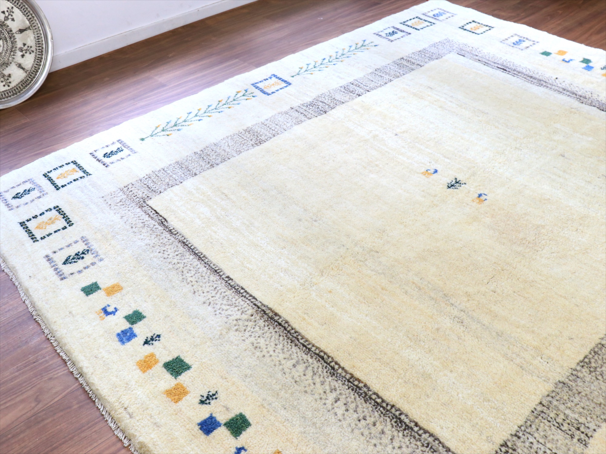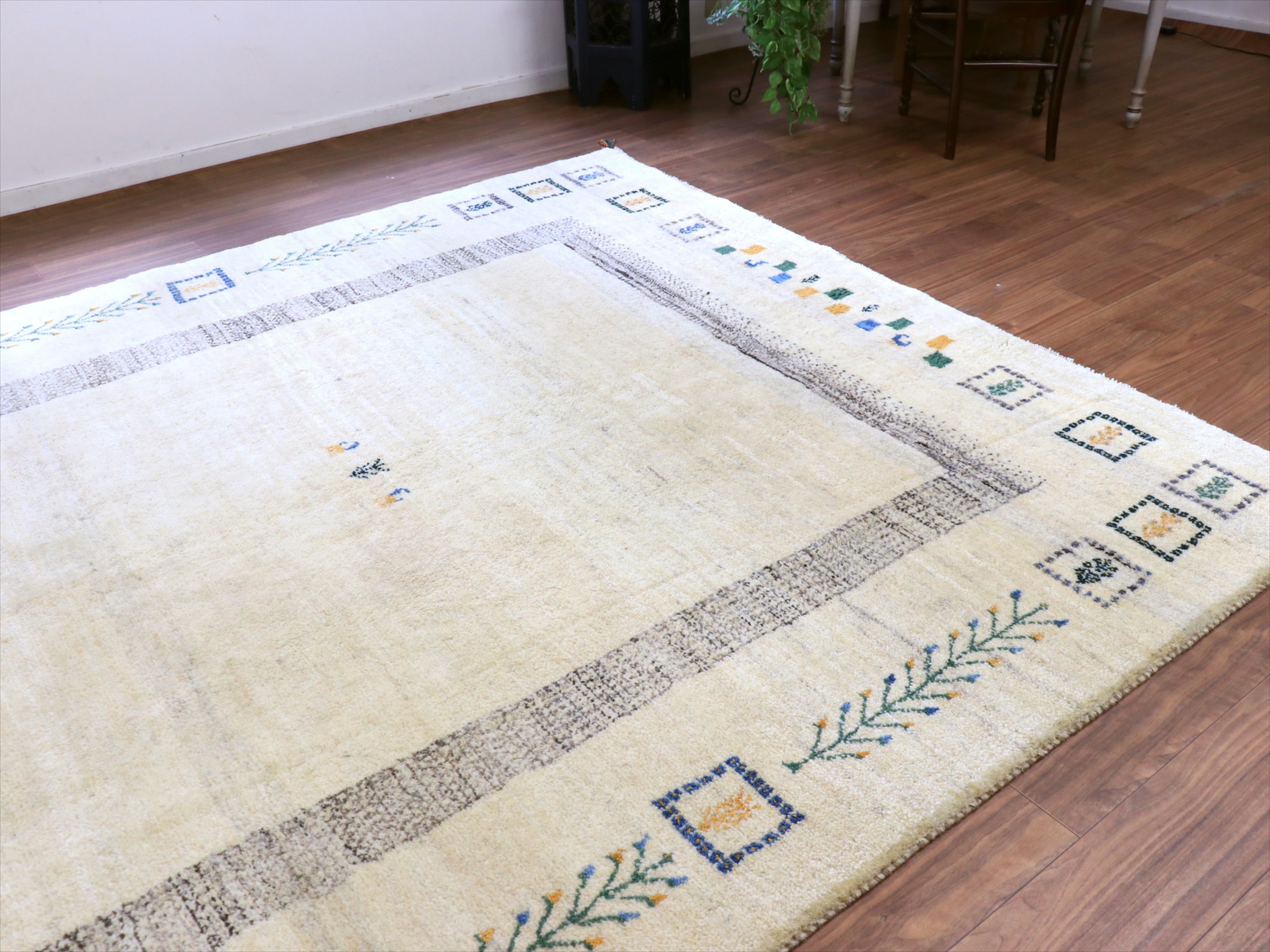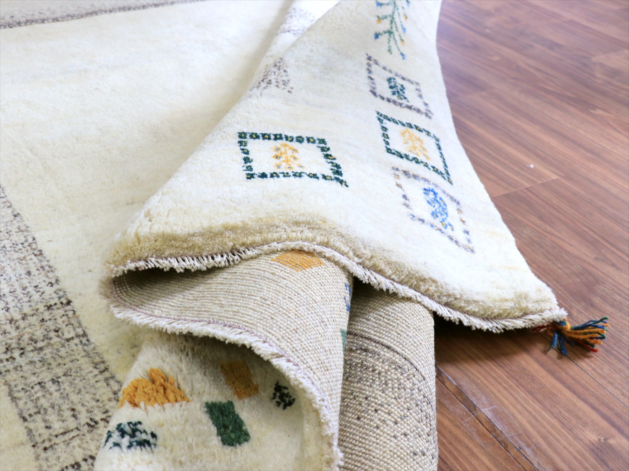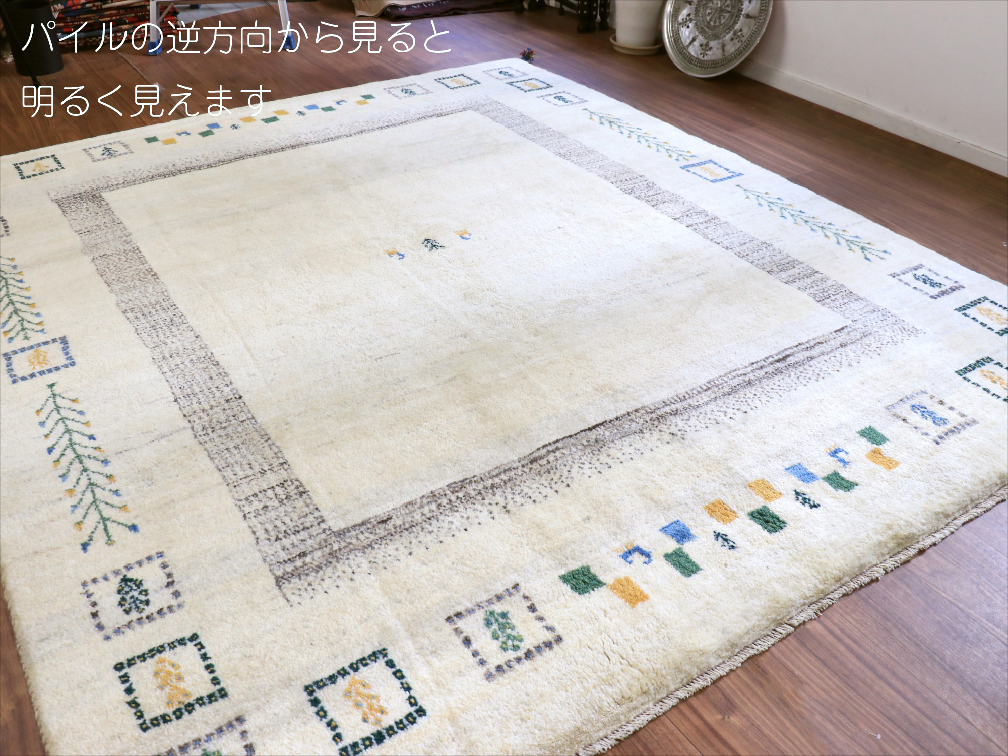 ギャッベ 遊牧民の手織りラグ 234x200cm ナチュラルアイボリー イラン産
