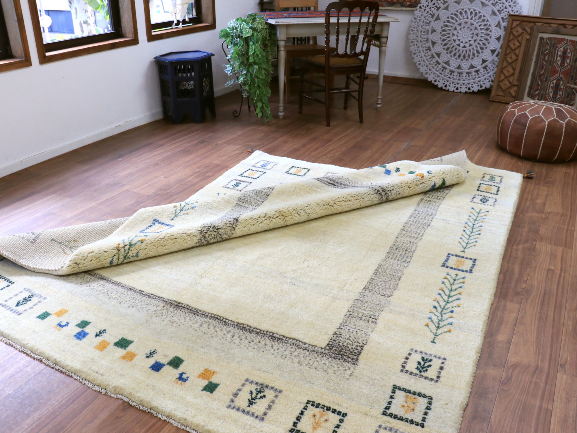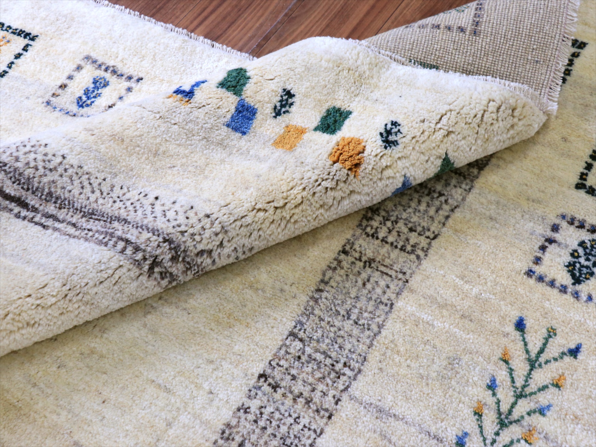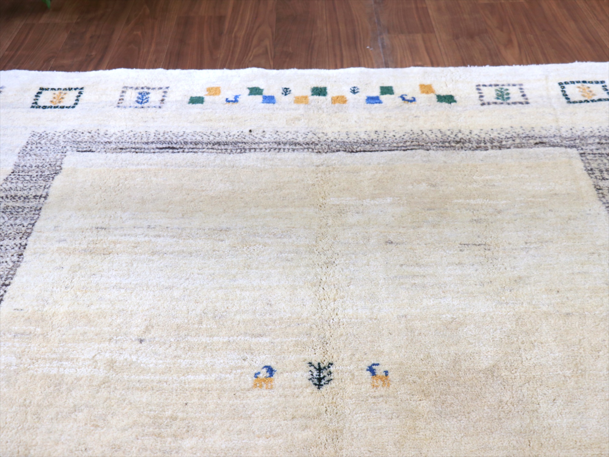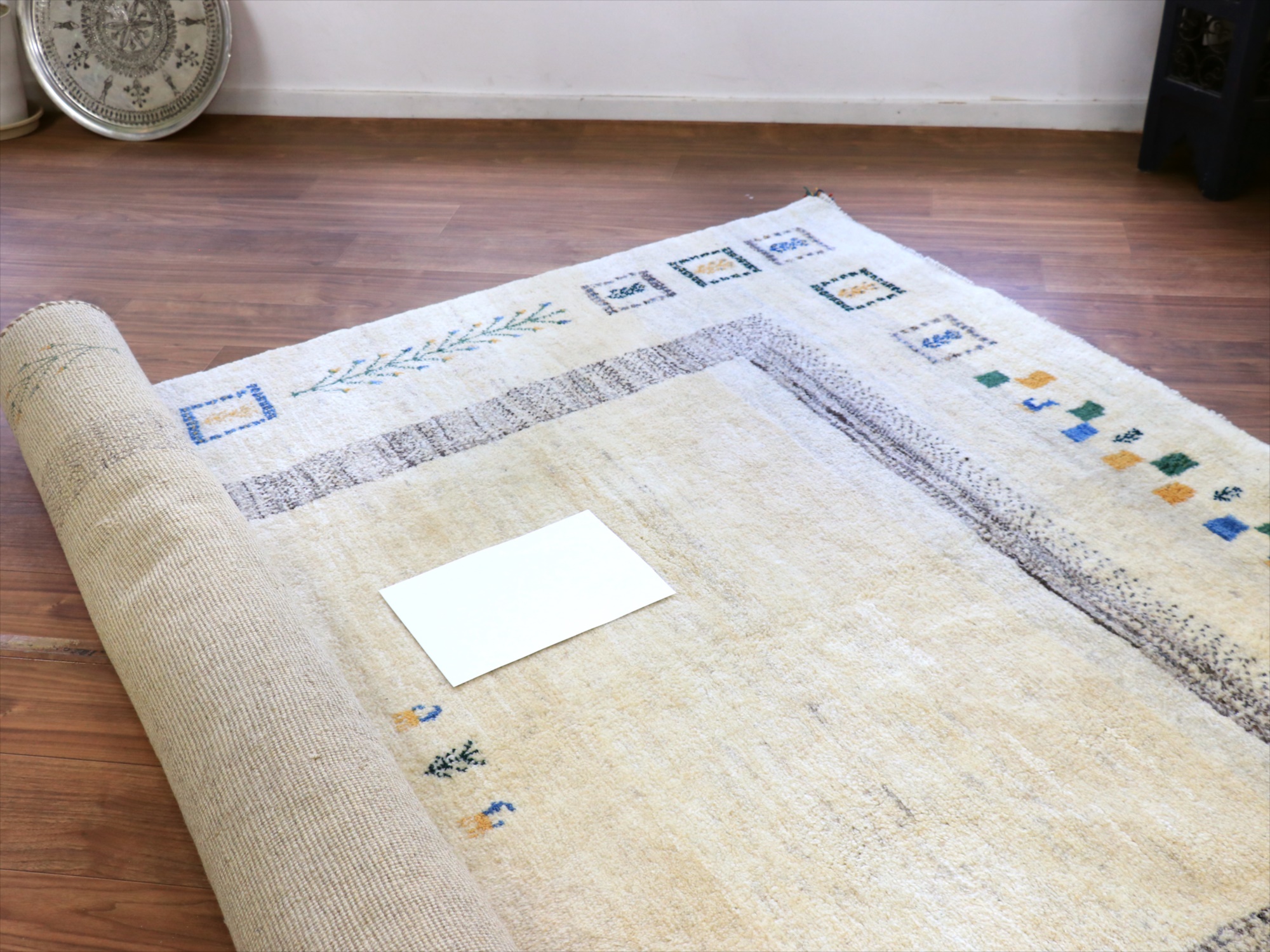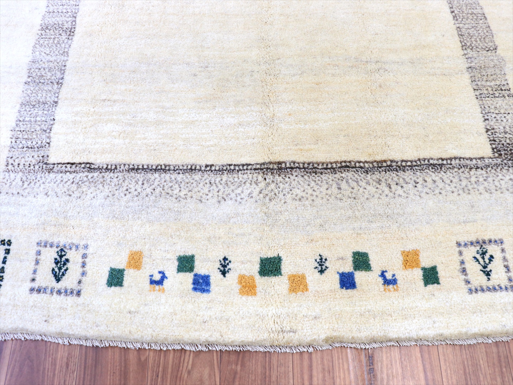 ギャッベ 遊牧民の手織りラグ 234x200cm ナチュラルアイボリー イラン産
